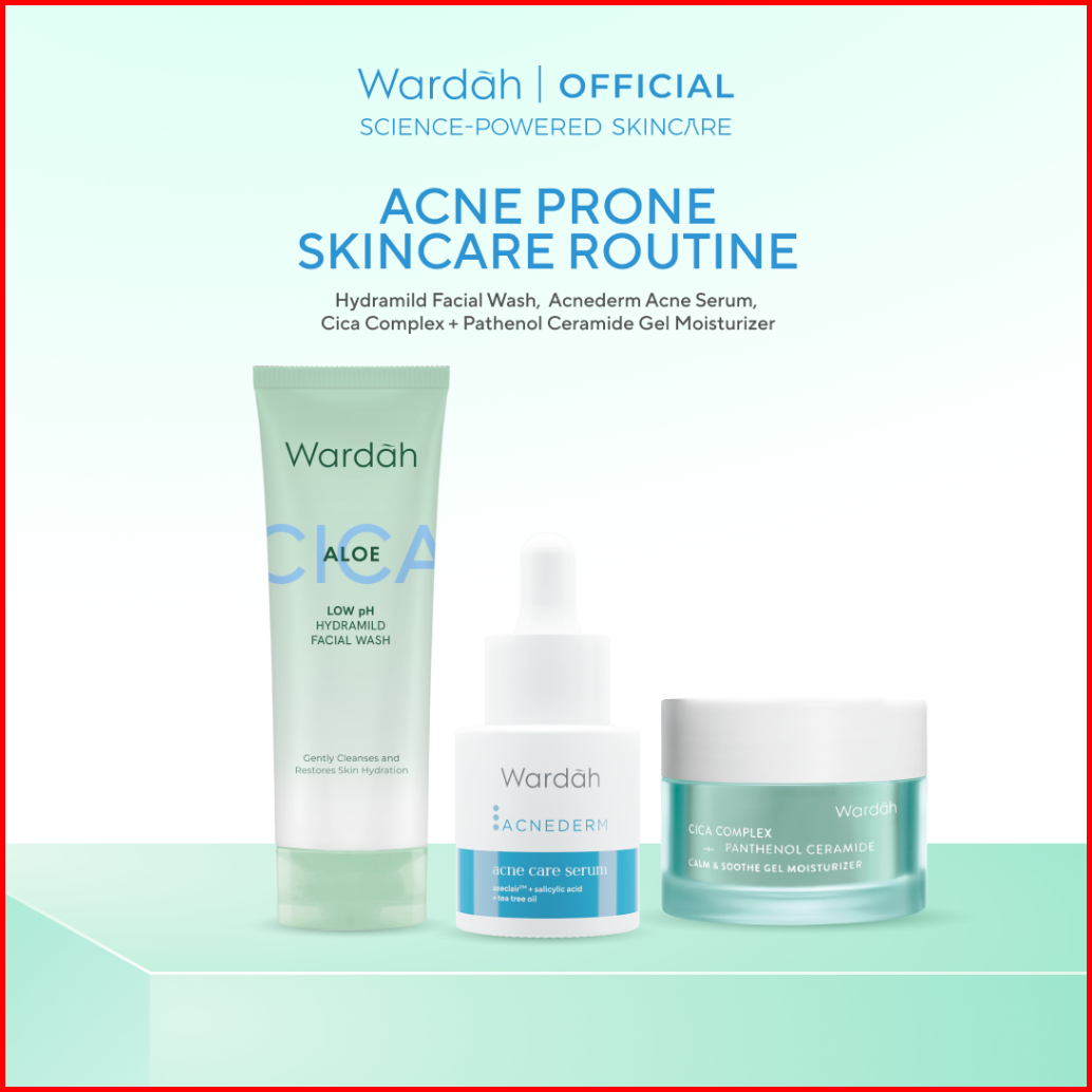 Wardah Paket 3 Pcs Gel Moisturizer Facial Wash Dan Serum - Bright Radiant Bright Glowing Calm Acne Hydrated Plump Nature