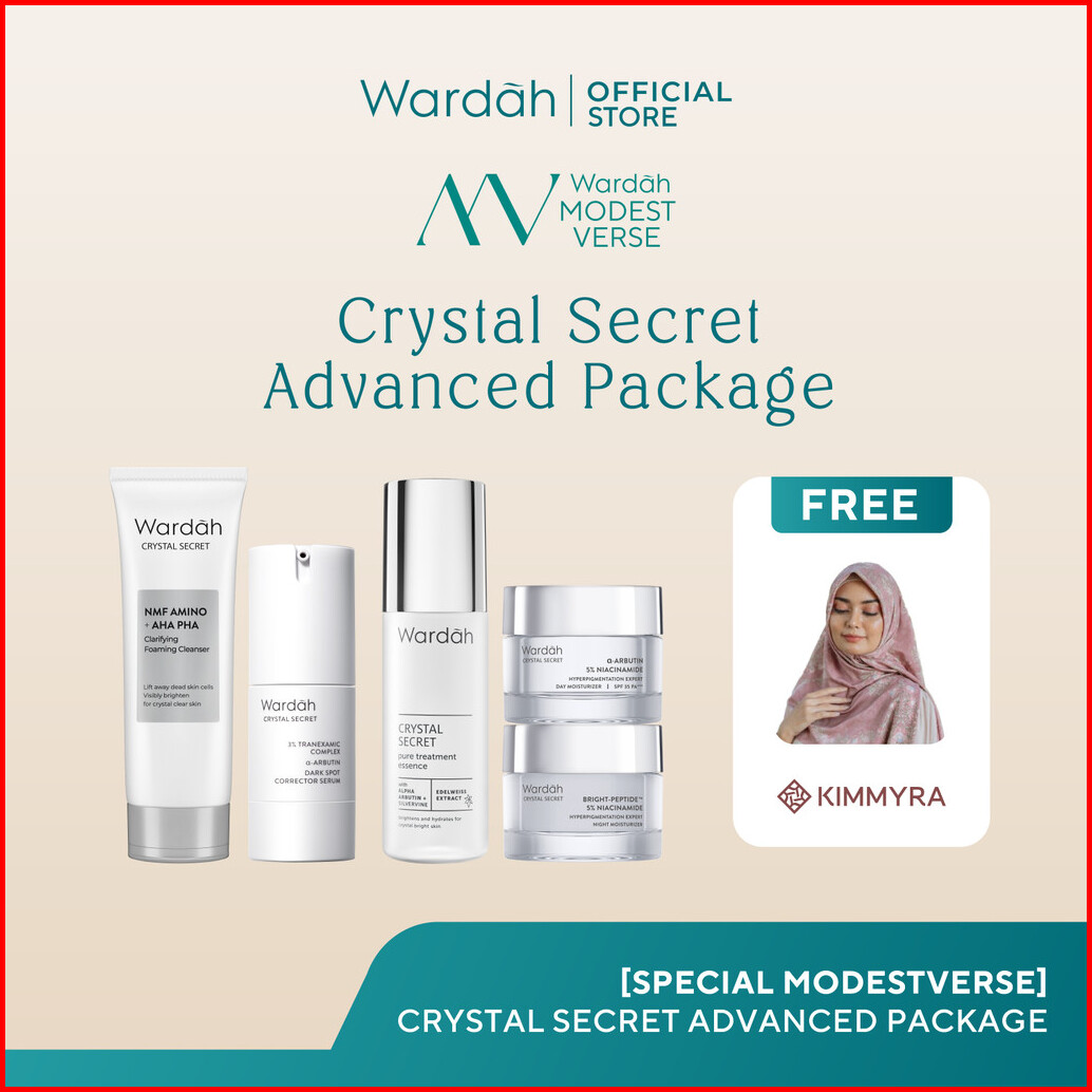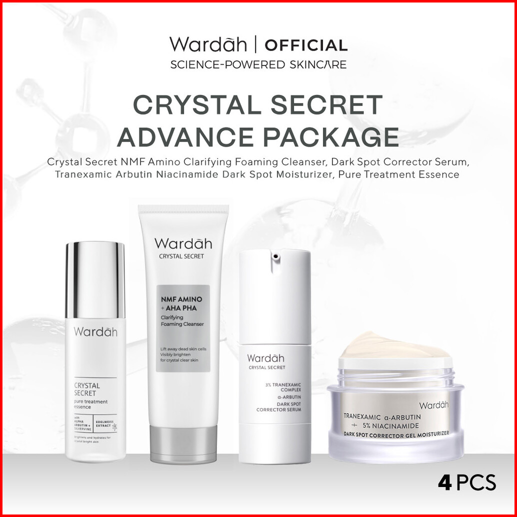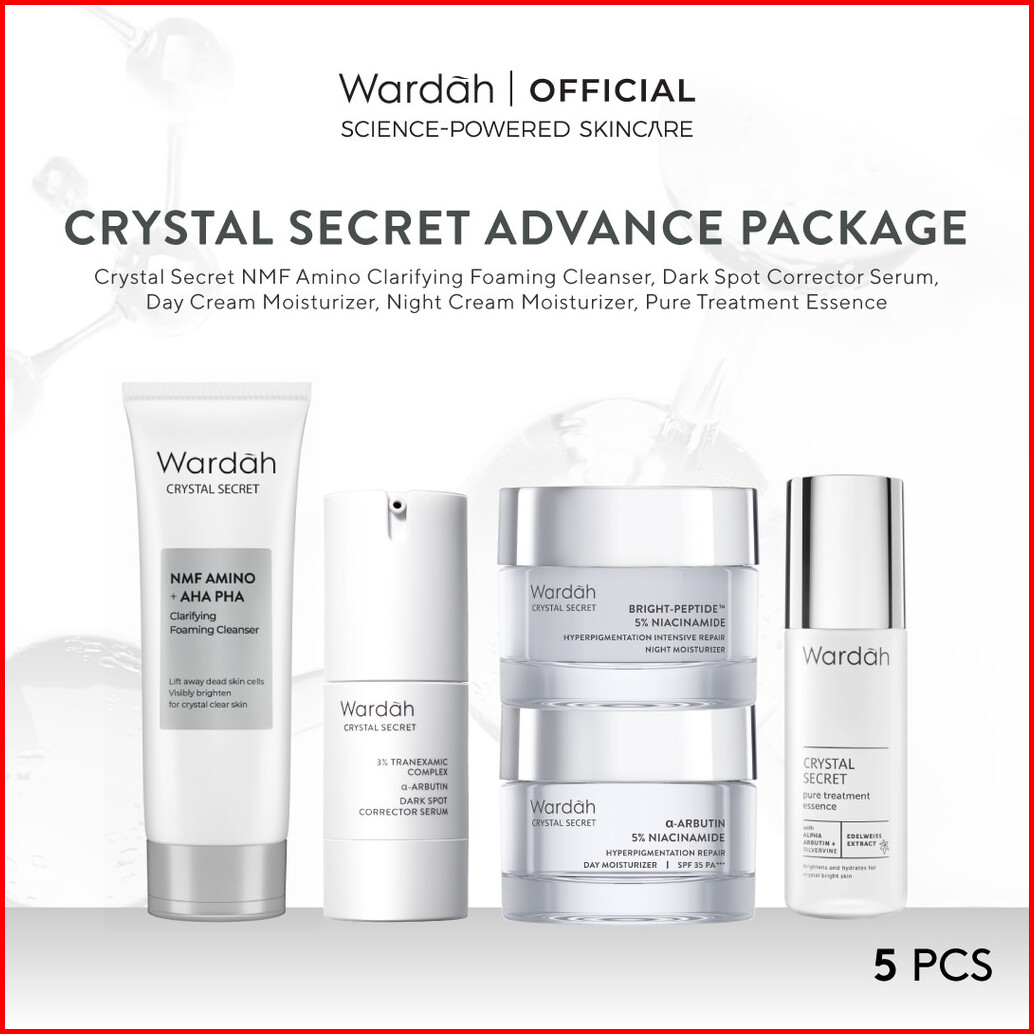 Wardah Crystal Secret Package Cleanser Essence Toner Serum Day Cream Night Cream