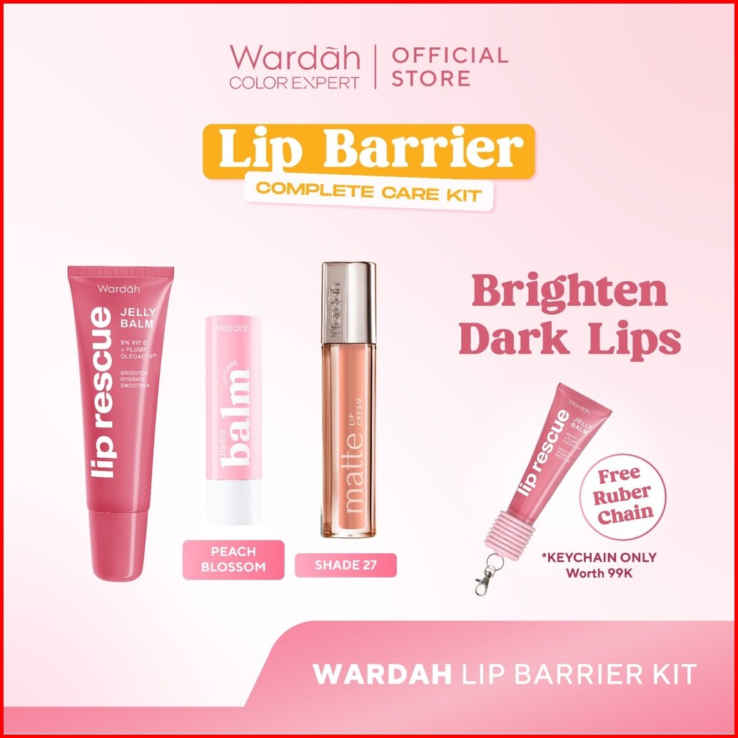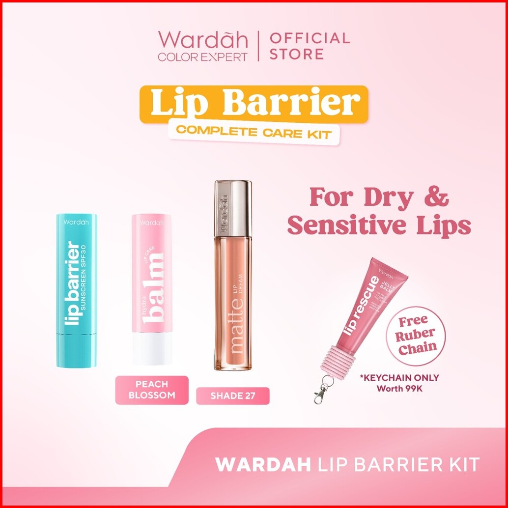 Paket Bibir Cerah Wardah Lip Care Package - Hydrabalm Lip Care Peach Blossom Lip Barrier Sunscreen Spf 30 Pa Lip Rescue