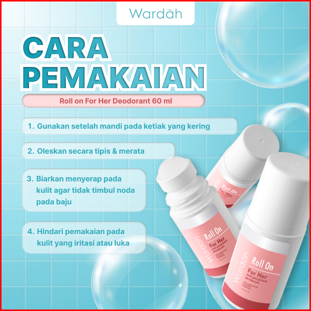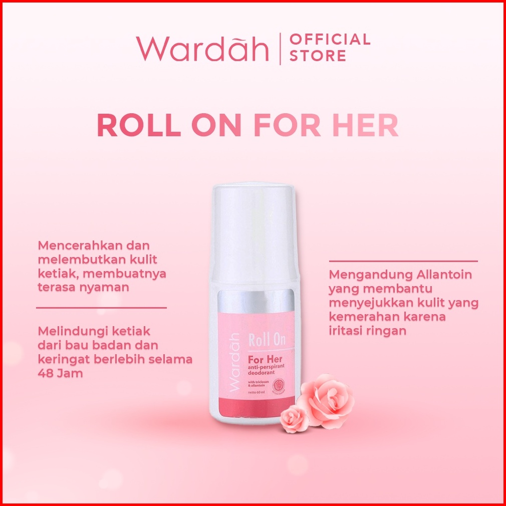 Wardah Roll On For Her 60 Ml - Deodoran Halal Non Alkohol Yang Mampu Mencegah Bau Badan Seharian - Nyaman Di Kulit Tidak