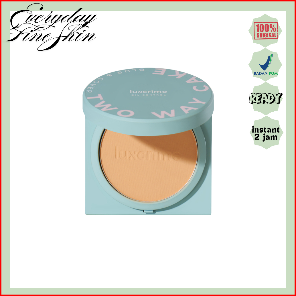 Luxcrime Oil Control Blur Cover Two Way Cake Powder Bedak Foundation Padat High Coverage Bpom