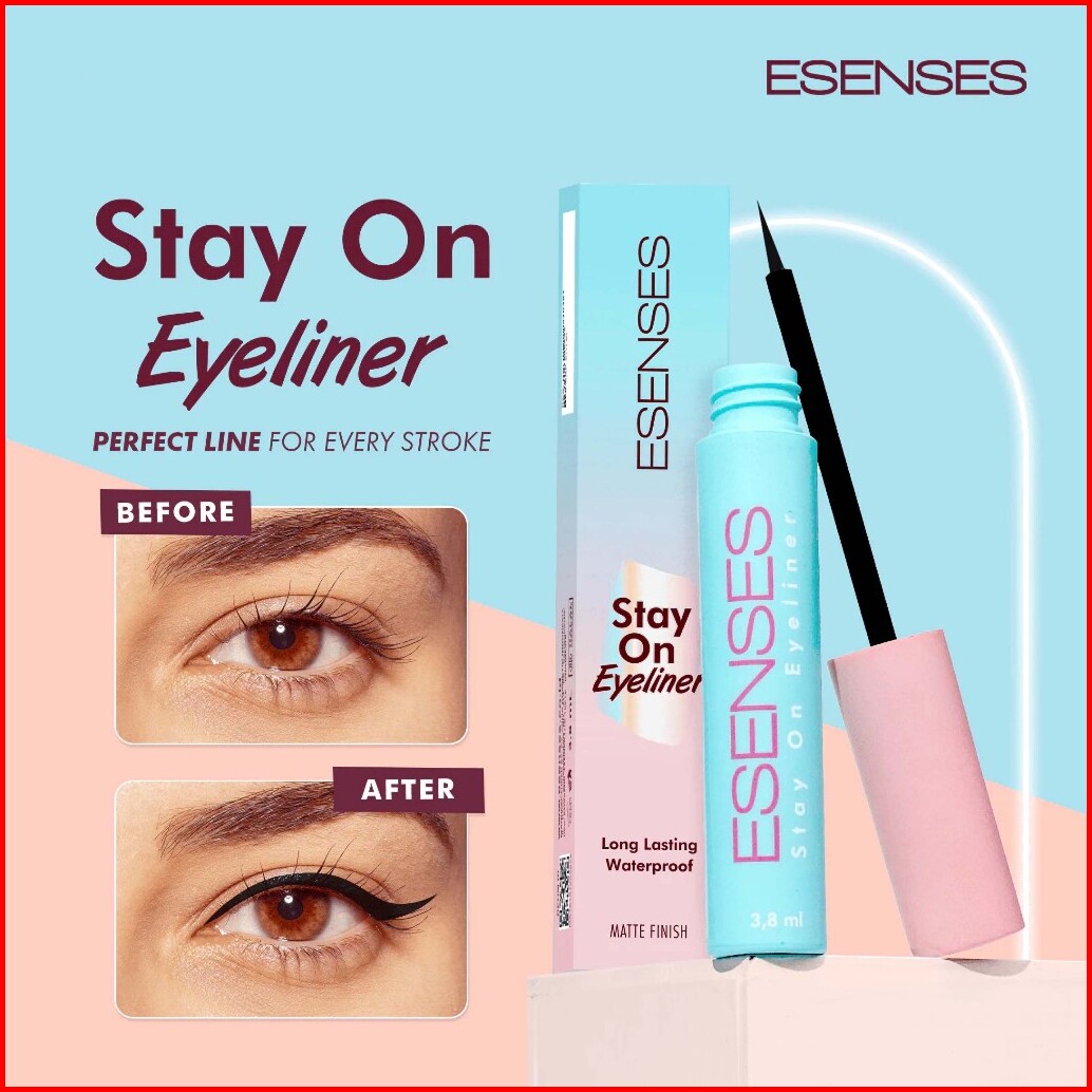 Esenses Stay On Eyeliner 4ml - Waterproof Long Lasting Dan Ujung Kuas Yang Tipis