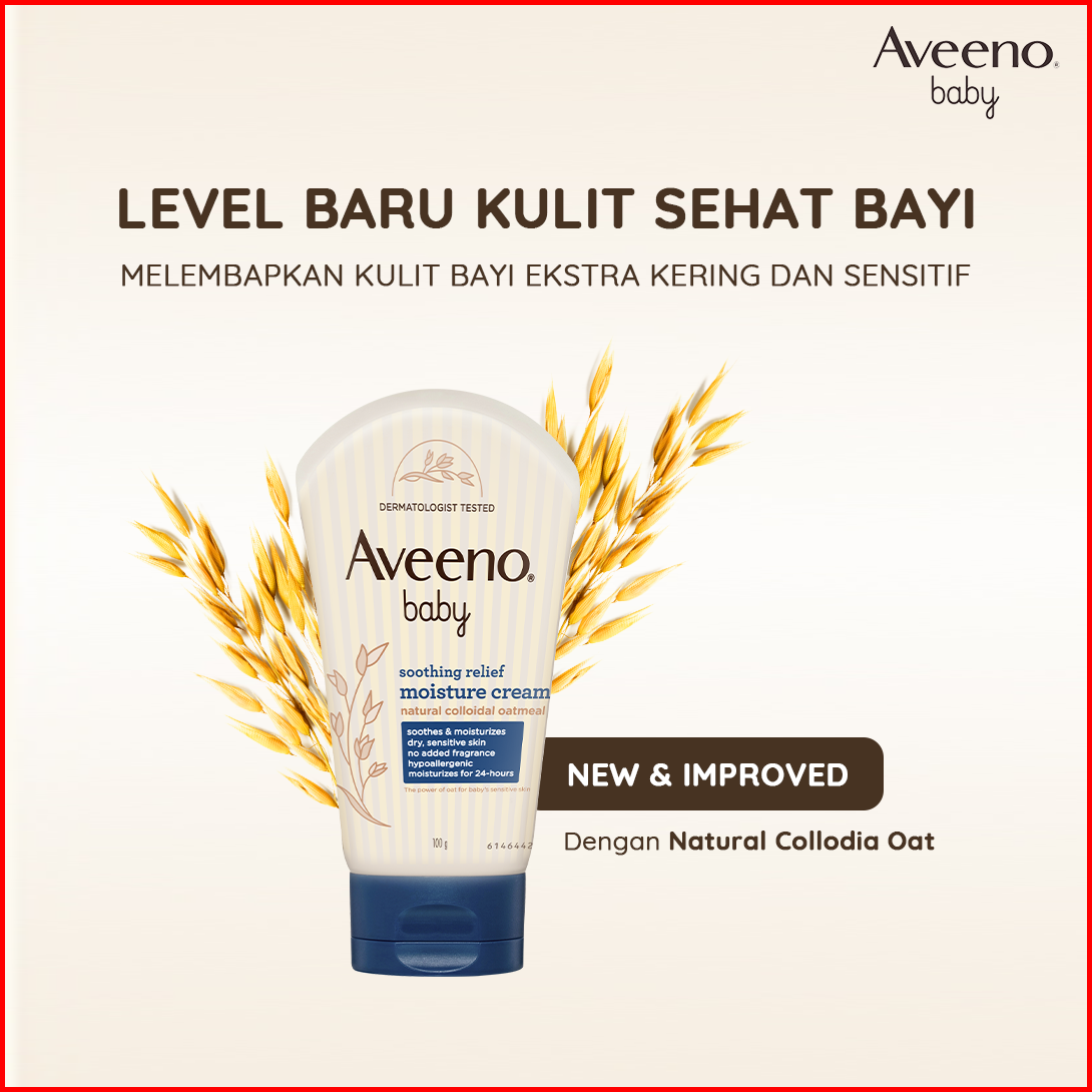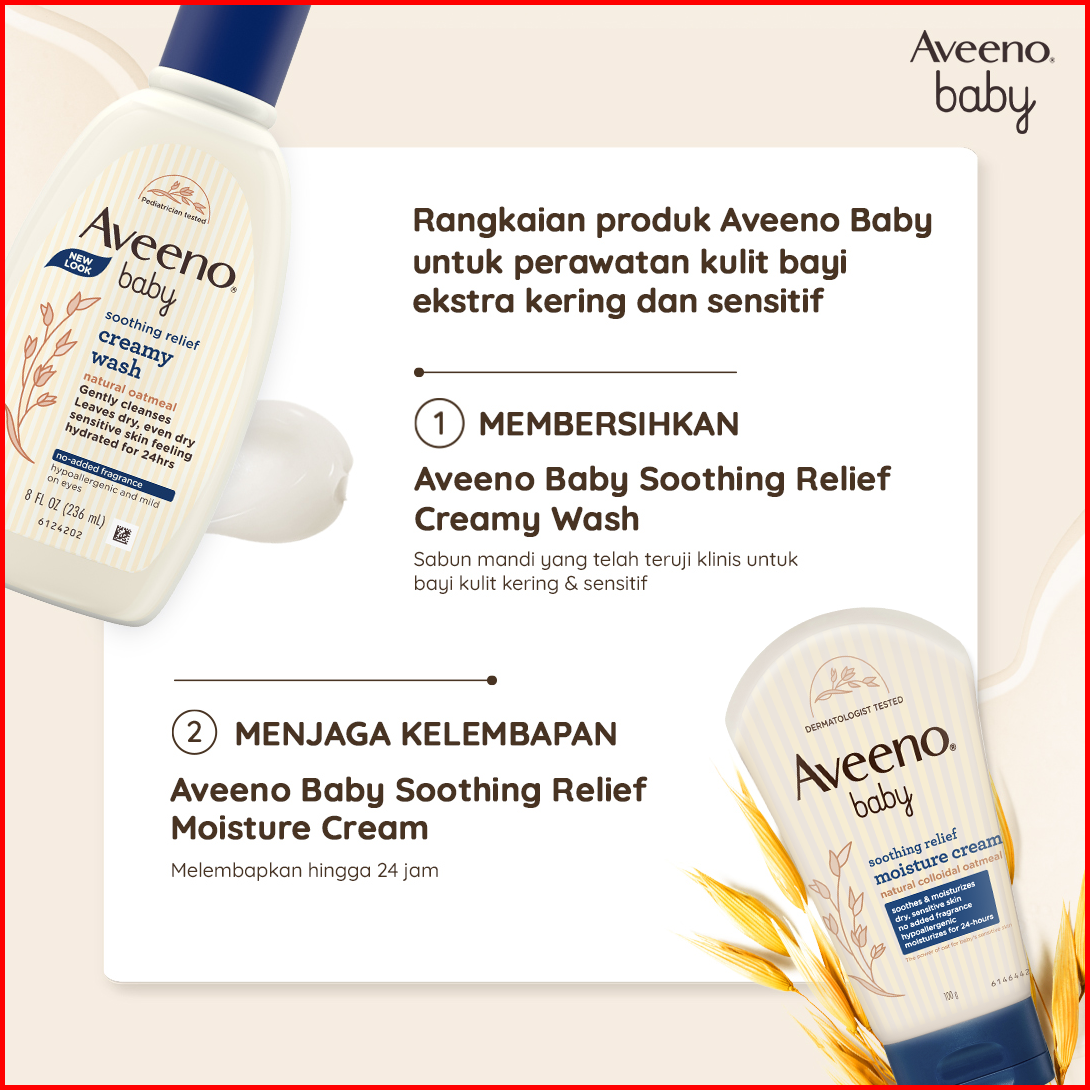 Aveeno Baby Soothing Relief Moisture Cream 100 Gr - Lotion Pelembap Kulit Bayi Kering Sensitif Hingga 24 Jam