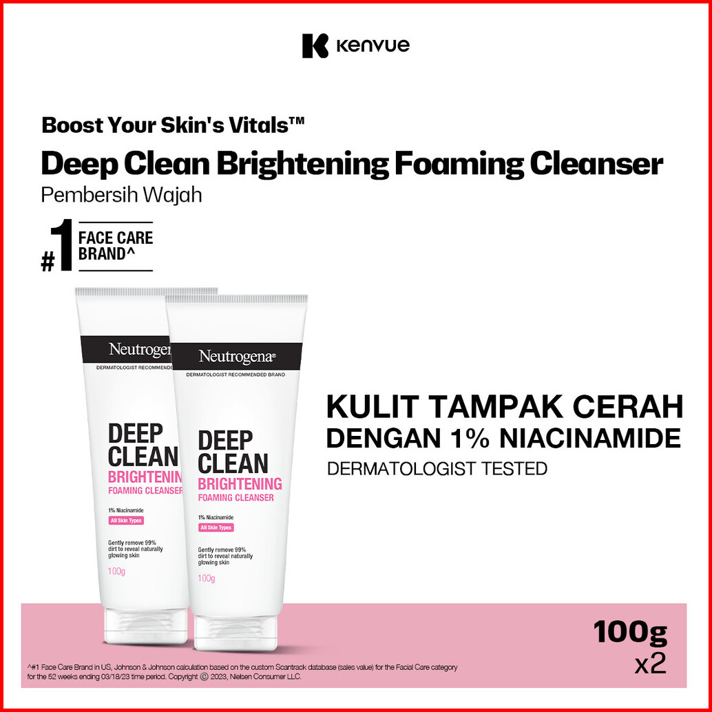 Neutrogena Deep Clean Brightening Foaming Cleanser - Pembersih Wajah 100gr - Isi 2
