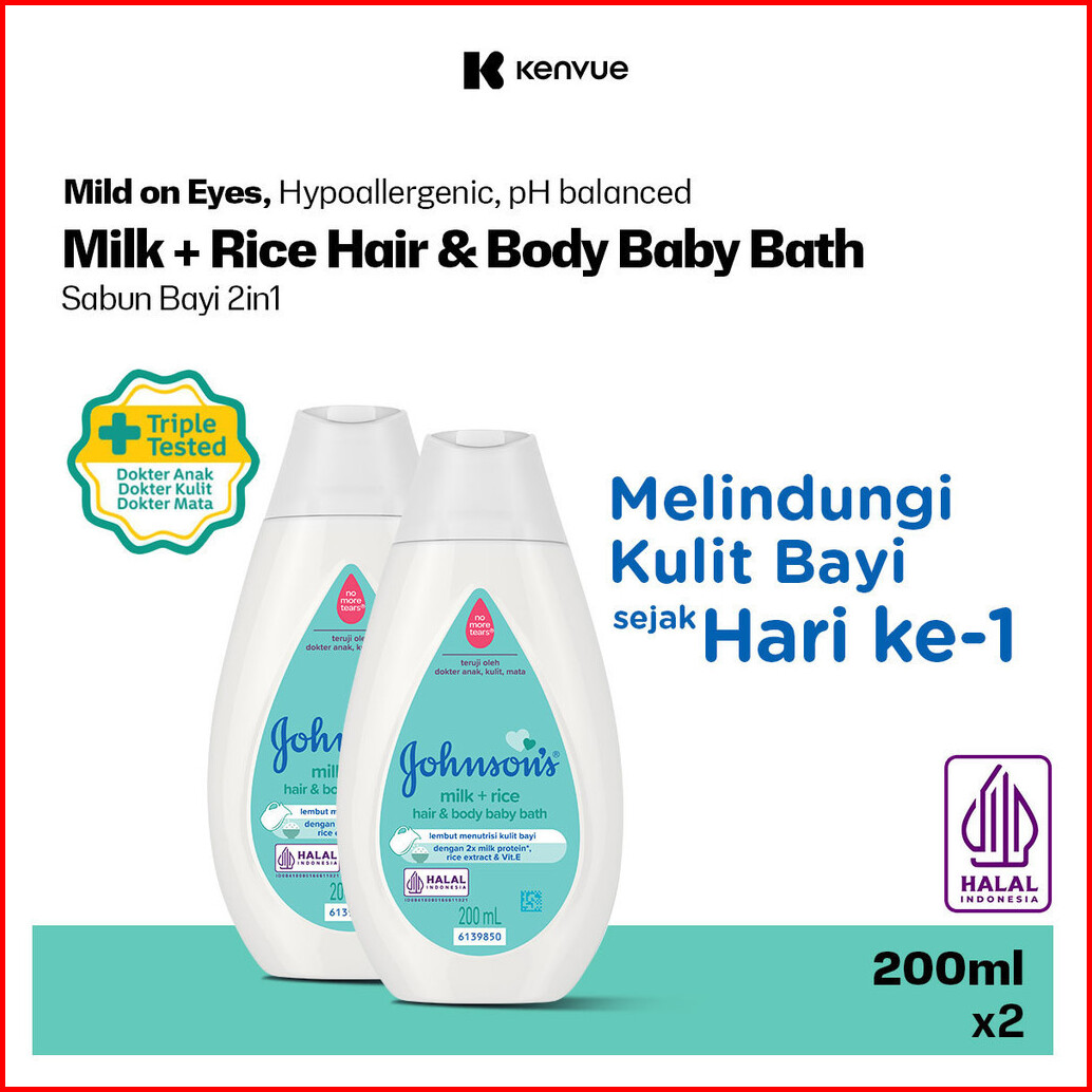 Johnson S Milk Rice Hair Body Baby Bath - Sabun Bayi 2in1 200ml - Isi 2