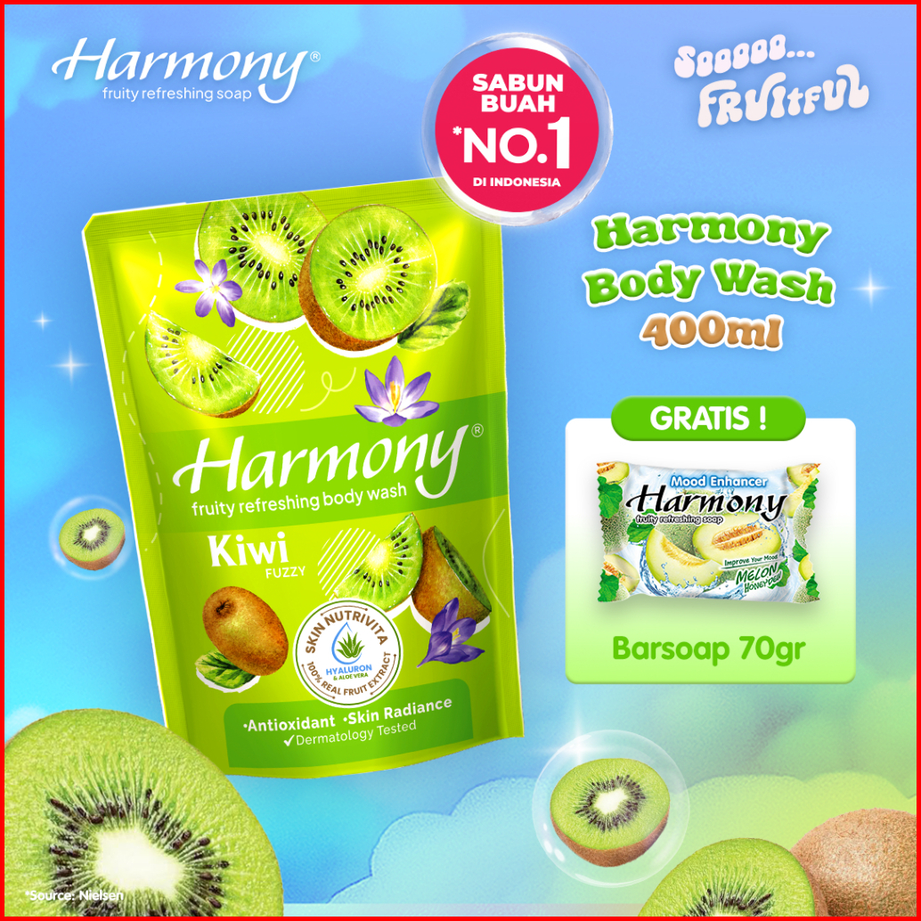 Bundling Harmony Refreshing Body Wash Kiwi Pouch 400ml Gratis Harmony Sabun Buah Melon 70g