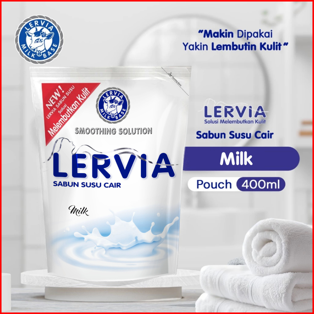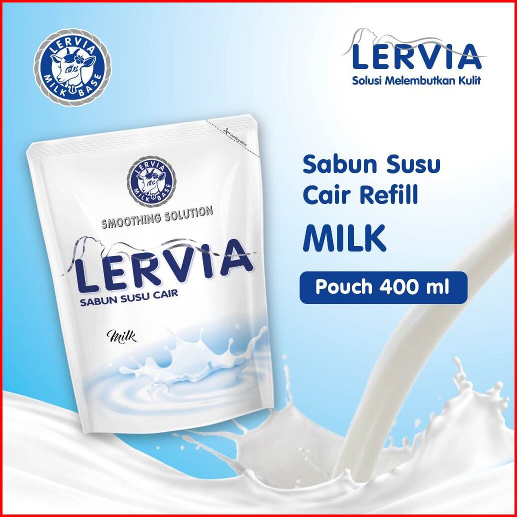 Bundling 2 Lervia Sabun Susu Milk Pouch 400ml Gratis Lervia Facial Wash Milk Tube 100ml