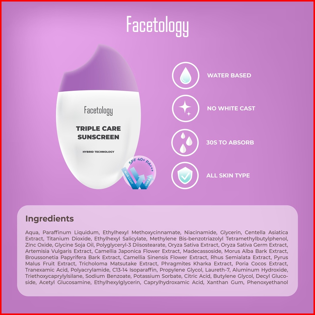 Facetology Triple Care Sunscreen - Sunscreen Spf 40 Dengan Skincare Benefit Melindungi Dari Sinar Uv Melembapkan Kulit