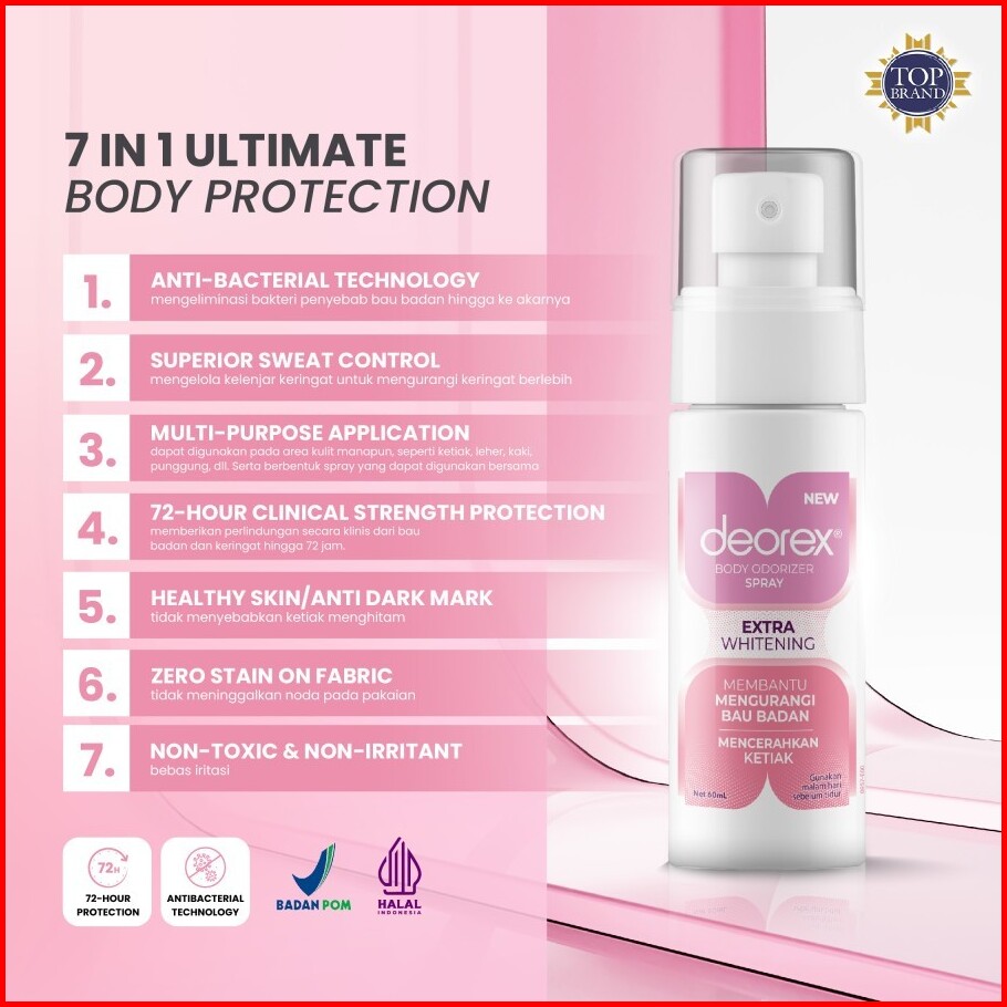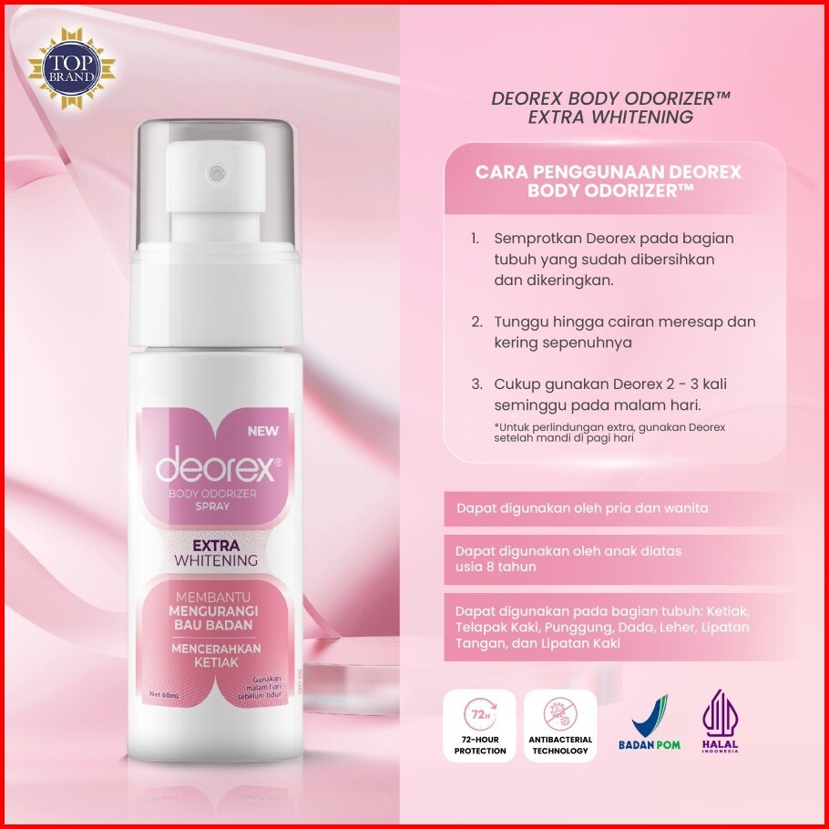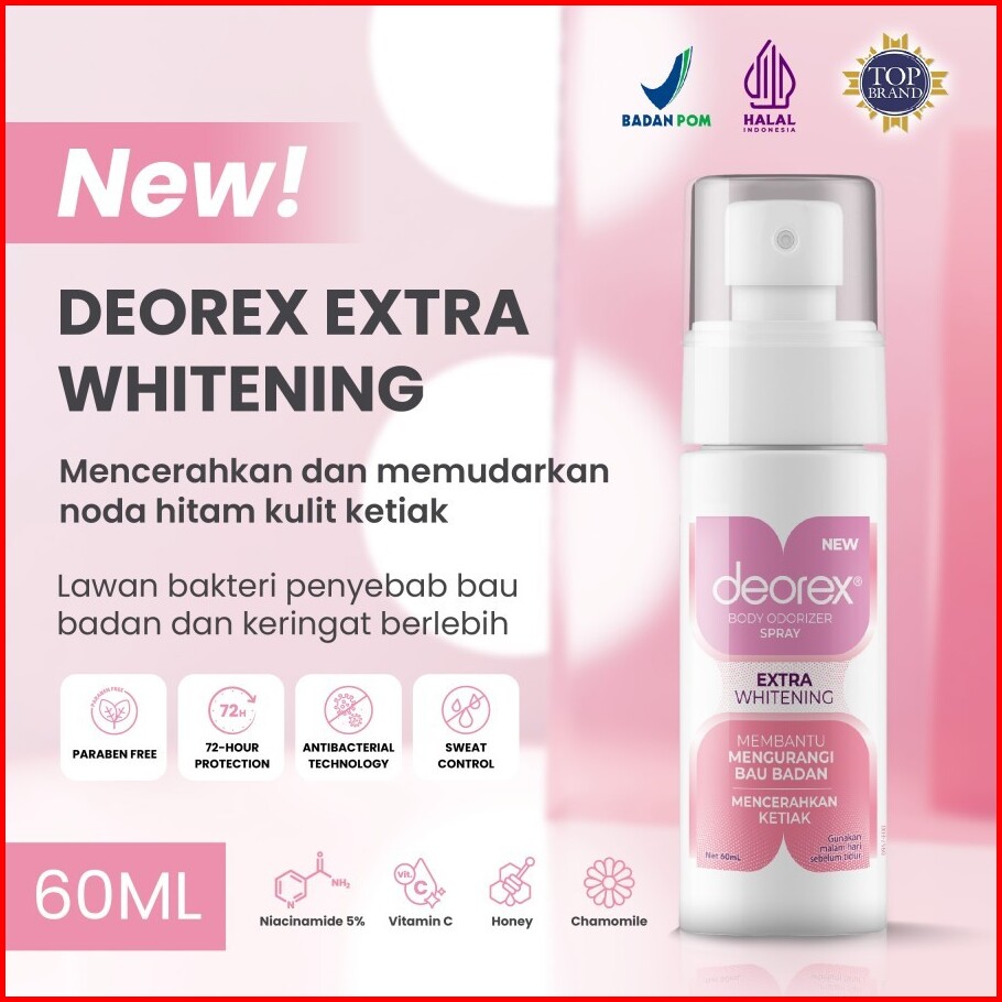 Deorex Body Odorizer Spray Extra Whitening 60ml - Body Odorizer Whitening Body Spray Membuat Ketiak Lebih Cerah Deodoran
