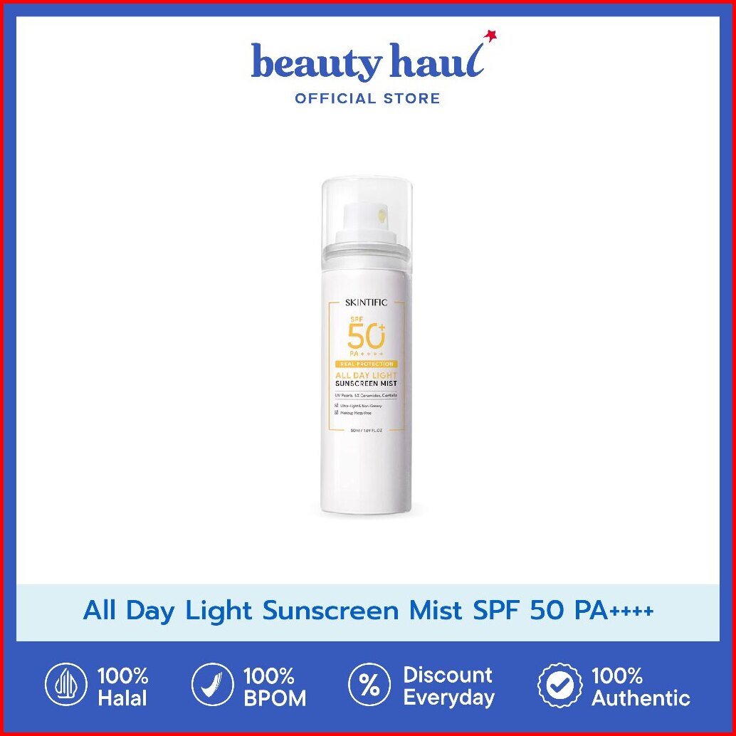Skintific All Day Light Sunscreen Mist Spf 50 Pa - Sunscreen Mist Skintific Spf 50 Pa Sunscreen Spray Tidak Lengket