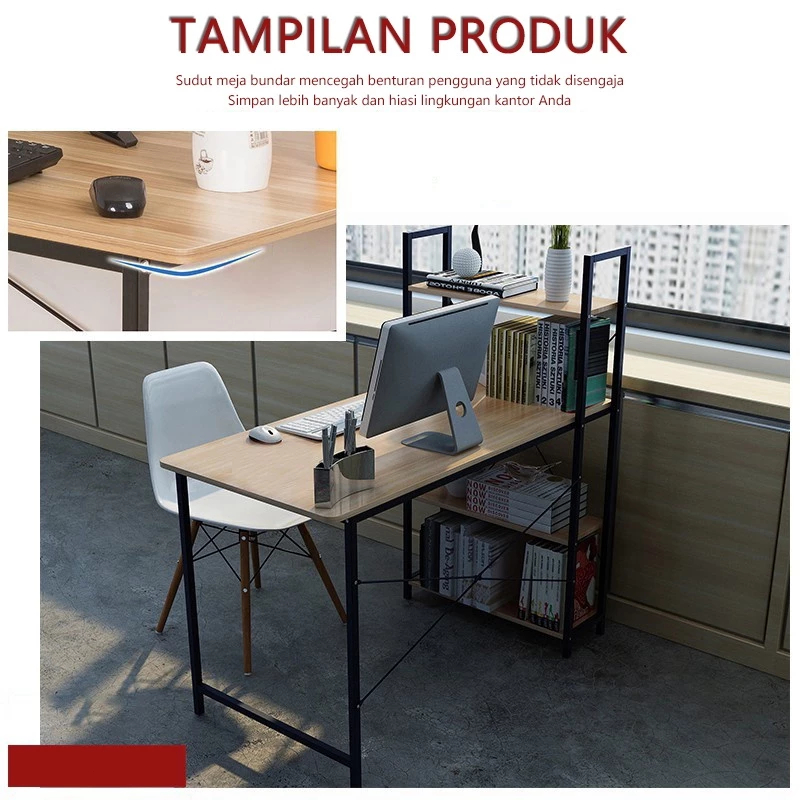 Meja Kantor & Belajar Multifungsi dengan Rak Buku - Desain Minimalis, Kokoh untuk Komputer & Menulis | GRATIS ONGKIR