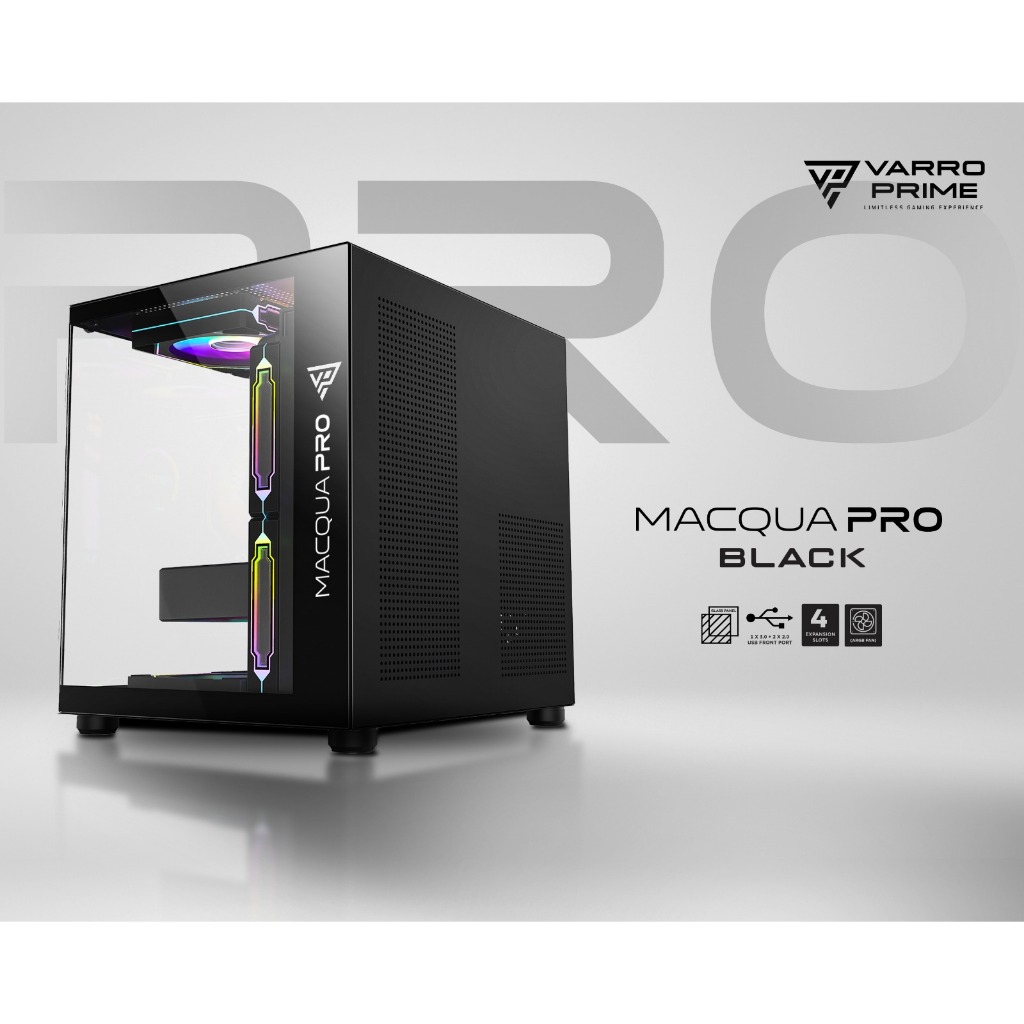 Casing PC Gaming Varro Prime Macqua Pro M-ATX Free 3 Fan RGB Tempered Glass
