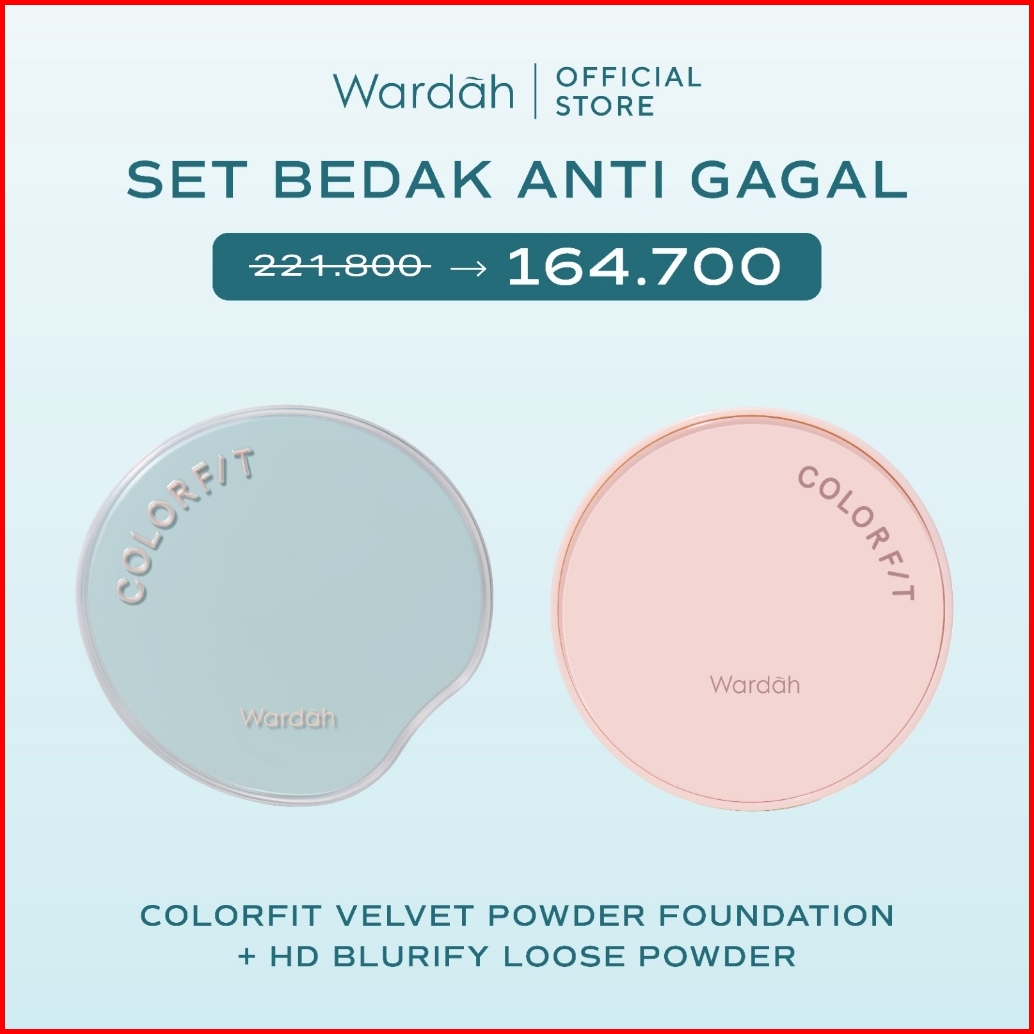 Paket Bedak Anti Gagal Wardah Colorfit Velvet Powder Foundation Hd Blurify Loose Powder - Bedak Padat Tahan 16 Jam Bedak