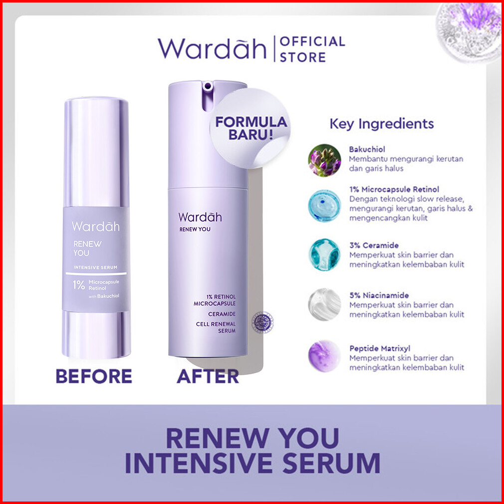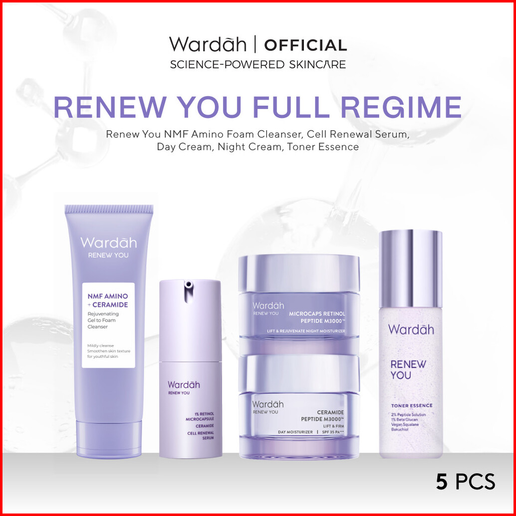 Wardah Renew You Paket Lengkap Full Regime Serum Night Cream Essence Toner Day Cream Facial Wash Moisturizer - Skincare