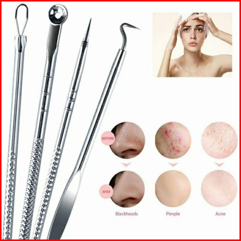 Mbh Pinset Komedo Set 4pcs Stainless Anti Karat - Facial Blackhead Removal Alat Pencetan Penghilang Jerawat Pembersih