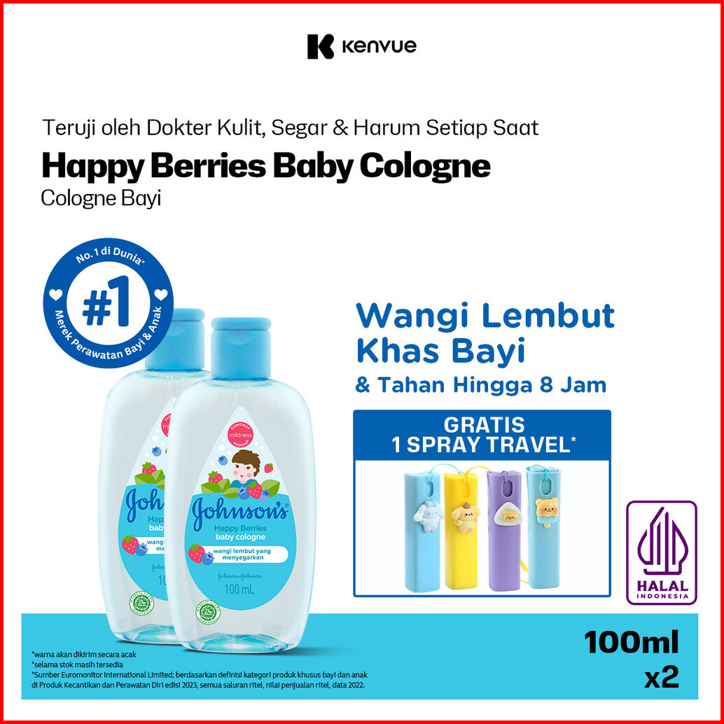 Johnson S Happy Berries Baby Cologne - Minyak Wangi Bayi 100ml - Isi 2