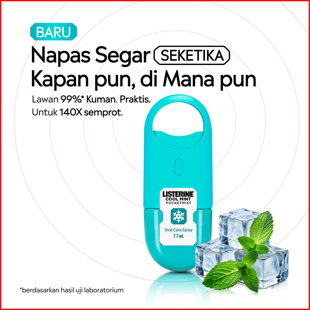 Listerine Pocketmist Cool Mint Mouth Spray Untuk Napas Ekstra Segar Seketika Lawan Bau Mulut - 7.7ml