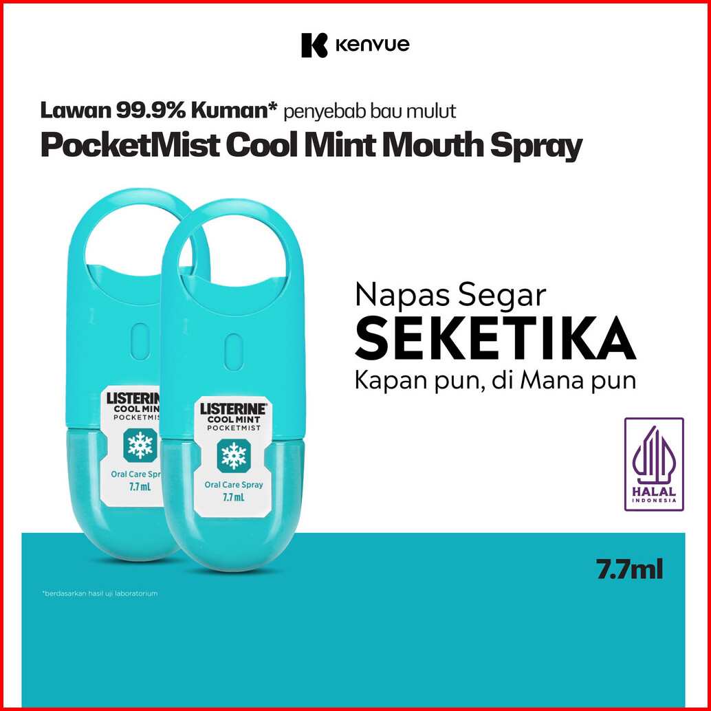 Listerine Pocketmist Cool Mint Mouth Spray Untuk Napas Ekstra Segar Seketika Lawan Bau Mulut 7.7ml - Isi 2
