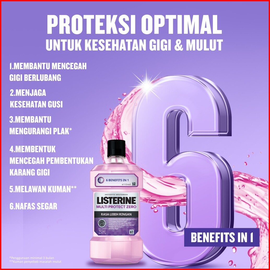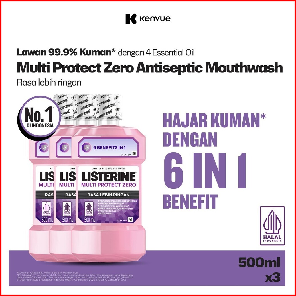 Listerine Multi Protect Zero Antiseptic Mouth Wash - Obat Kumur Antiseptik 500 Ml - Isi 3