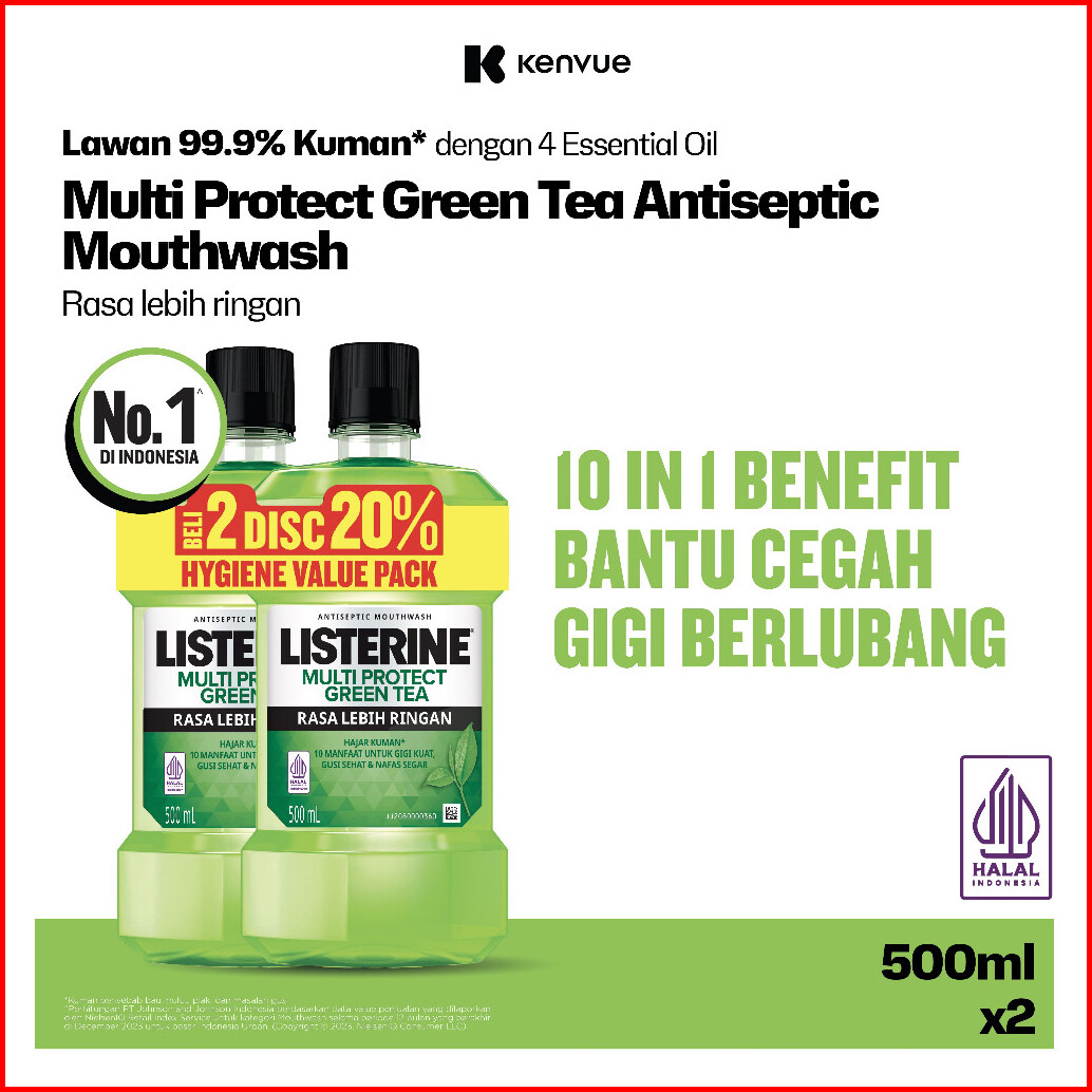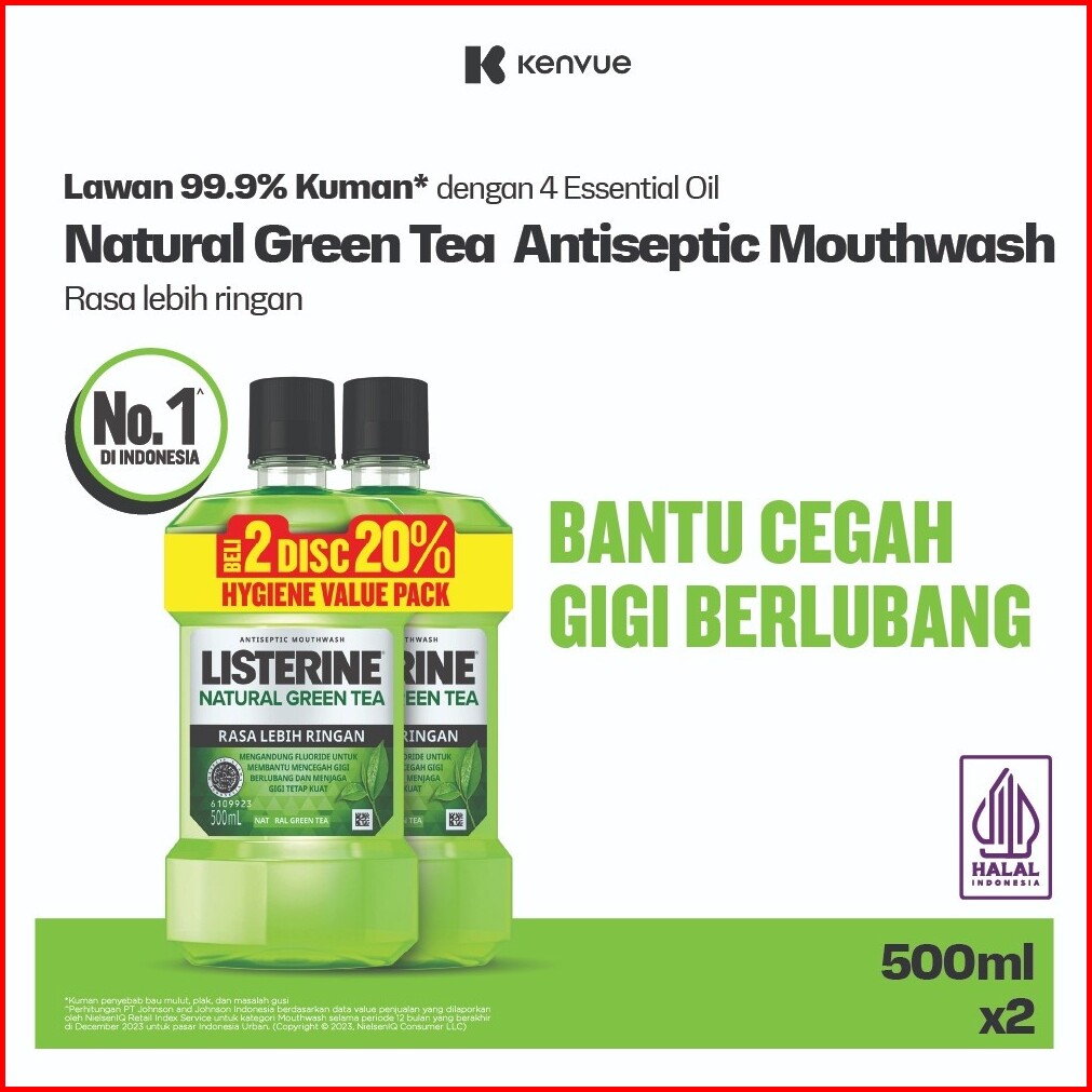 Listerine Green Tea Mouthwash Obat Kumur 500 Ml - Isi 2