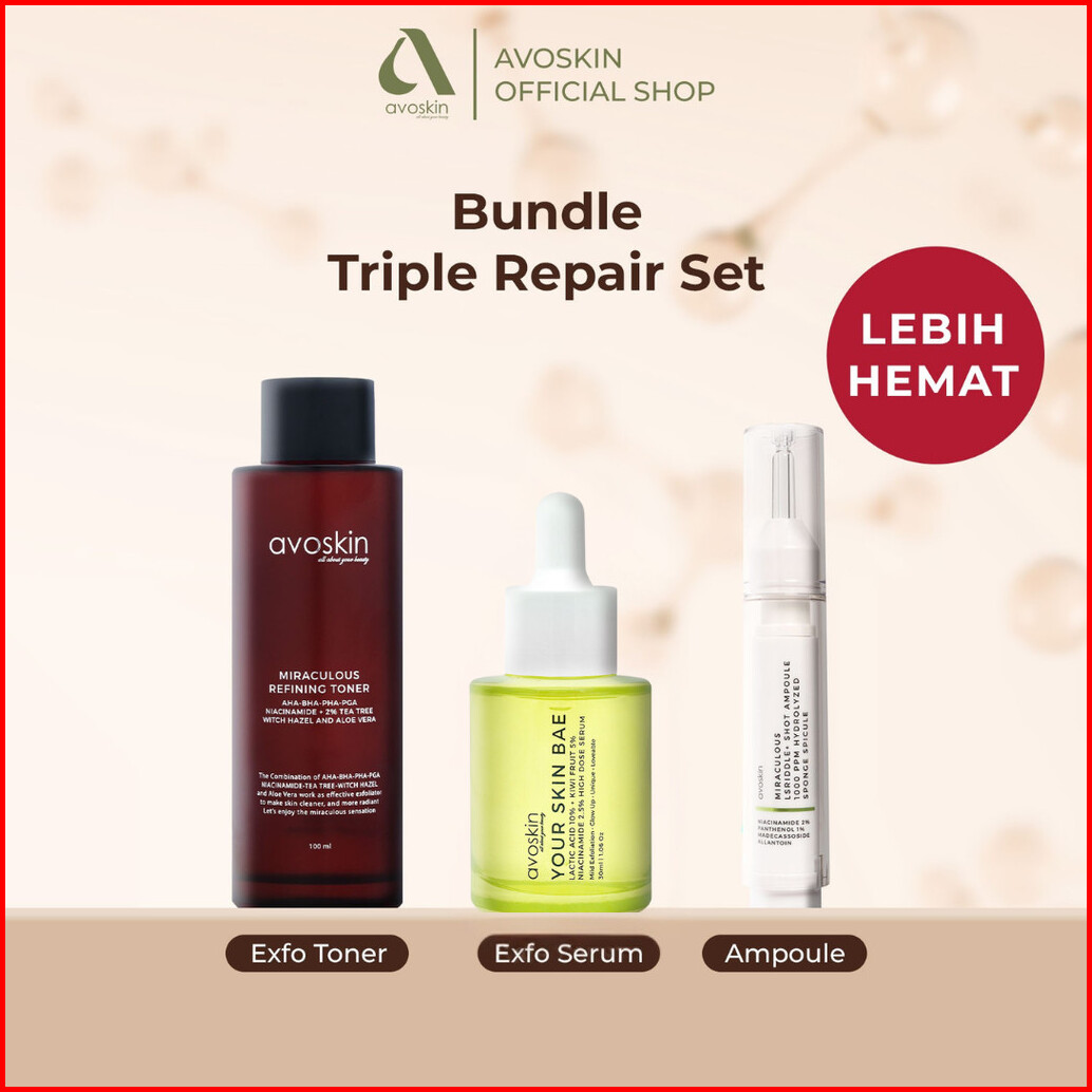 Bundle Triple Repair Set Avoskin - Miraculous Refining Toner 100 Ml Ysb Serum Lactic Acid 10 Miraculous Lsriddle Shot Am