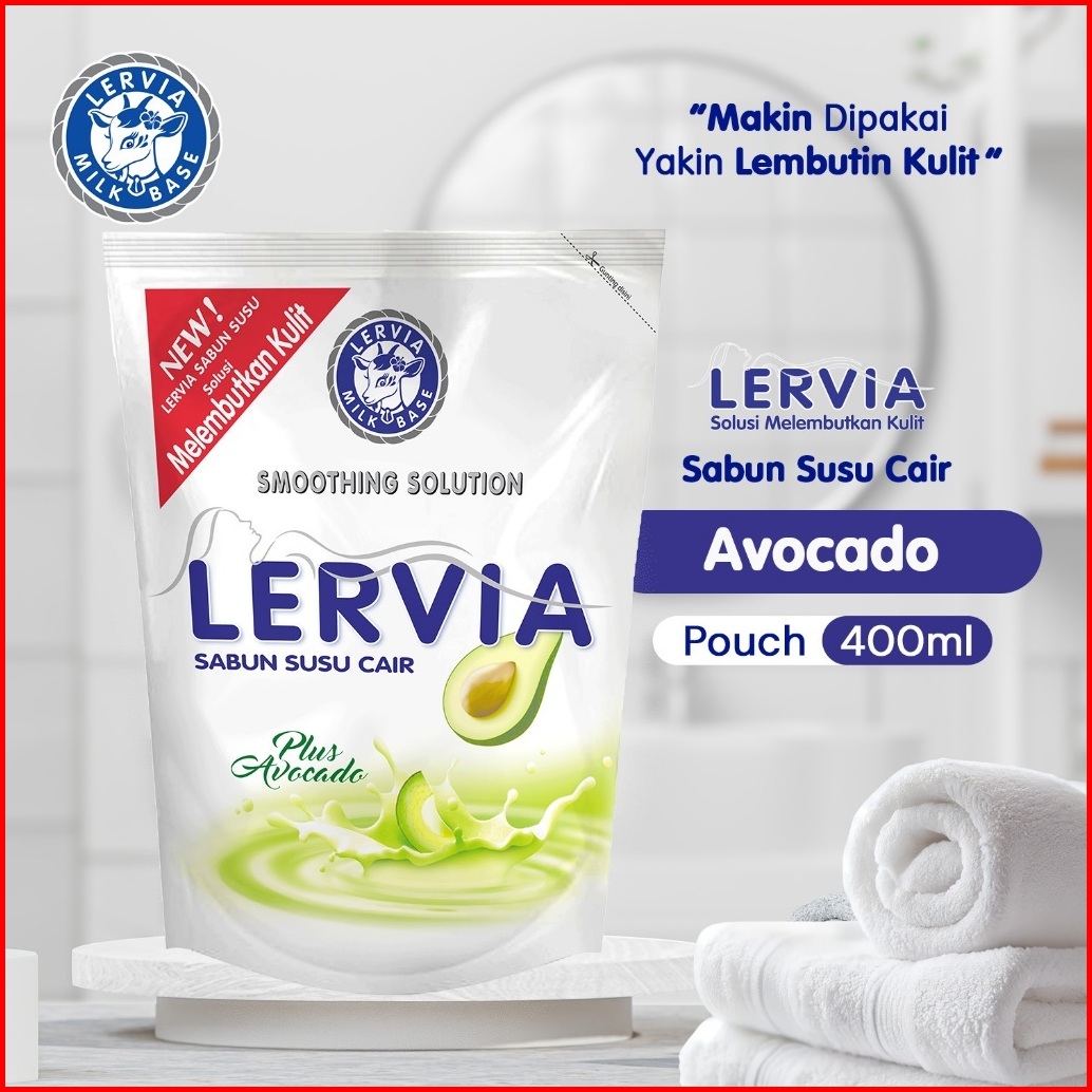 Bundling 2 Lervia Sabun Susu Avocado Pouch 400ml Gratis Lervia Facial Wash Green Tea Tube 100ml