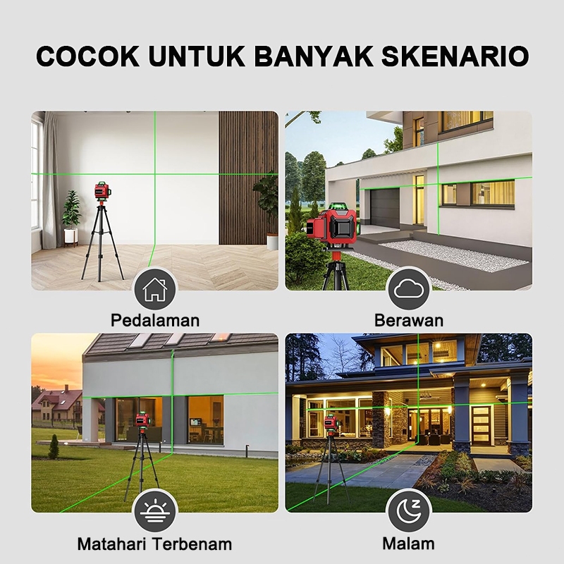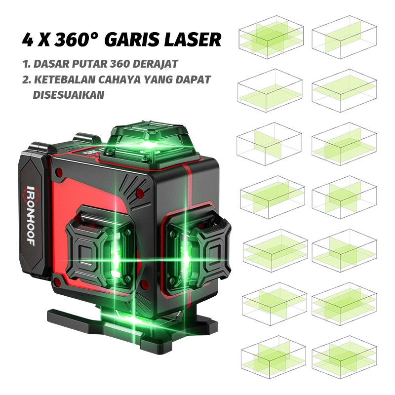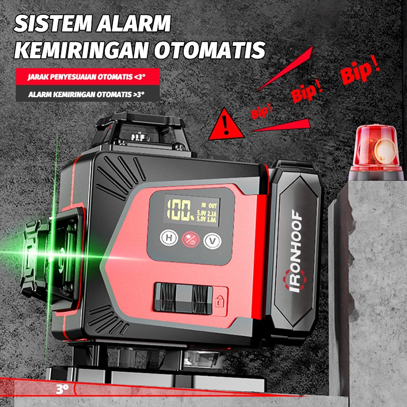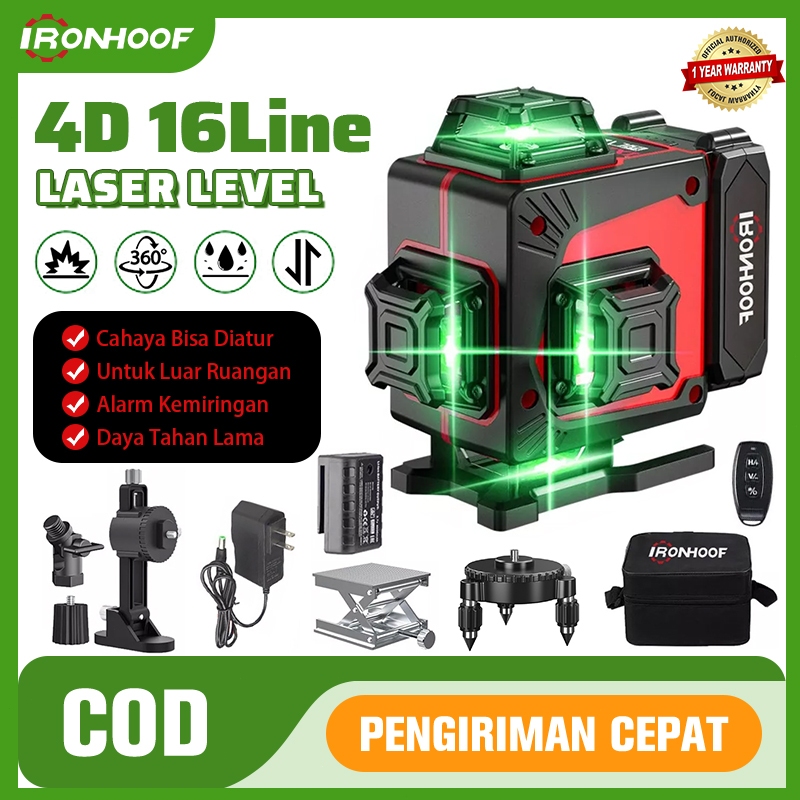 IRONHOOF LASER LEVEL 16 LINES MESIN SELF LEVELING LASER SINAR HIJAU DENGAN REMOT LASER SIKU WATERPASS DIGITAL