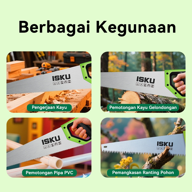 ISKU GERGAJI KAYU BAJA 65MN 18 INCH DIASAH 2 SISI & ANTI SLIP HAND SAW