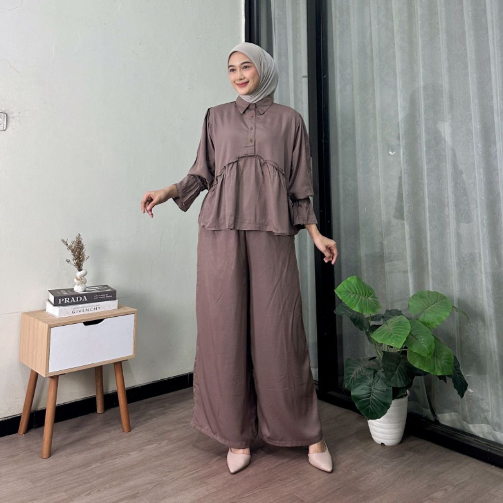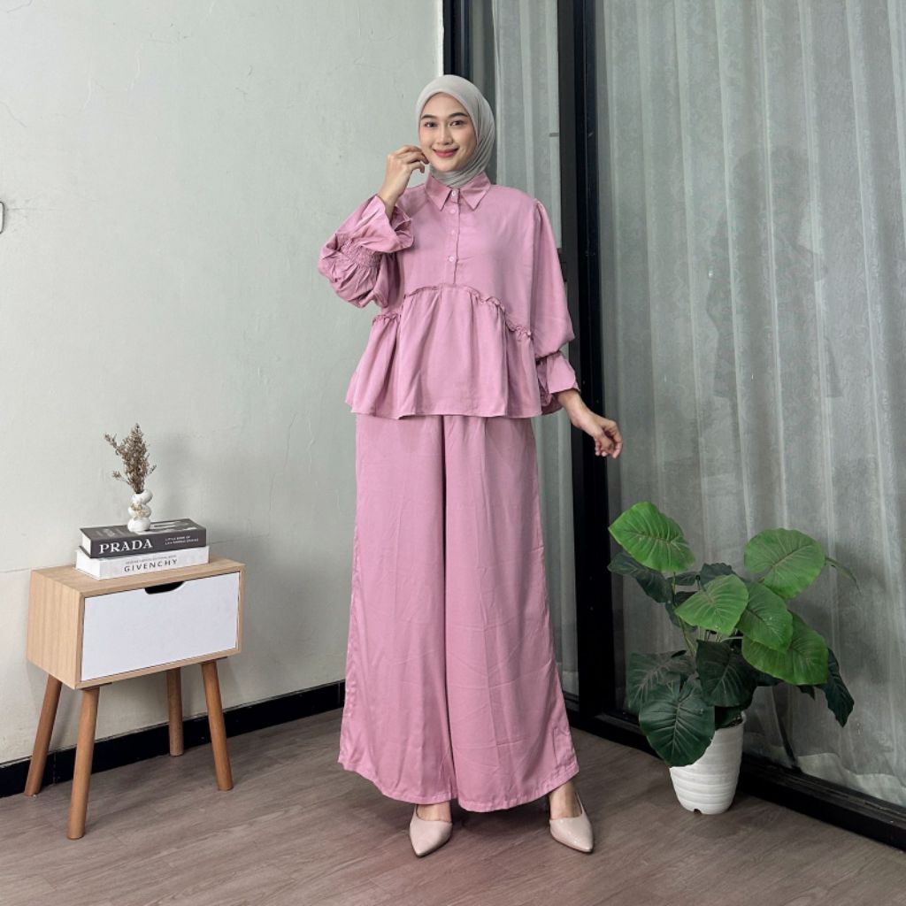 OneSet Celine Rayon Twill Polos Busui / Setelan Rayon Jumbo Premium Wanita Terbaru Kekinian