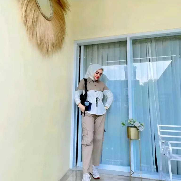 BAJU WANITA SETELAN POLOS KOMBINASI SET CARGO LENGAN PANJANG CELANA PANJANG