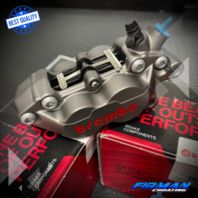 KALIPER BREMBO 4 PISTON 1 PIN GREY KANAN UNIVERSAL ORIGINAL RED LOGO