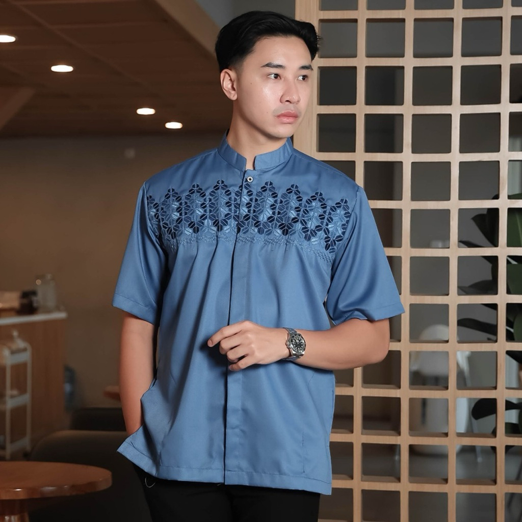 baju koko pria bordir tangan pendek katun madina warna katun AG11