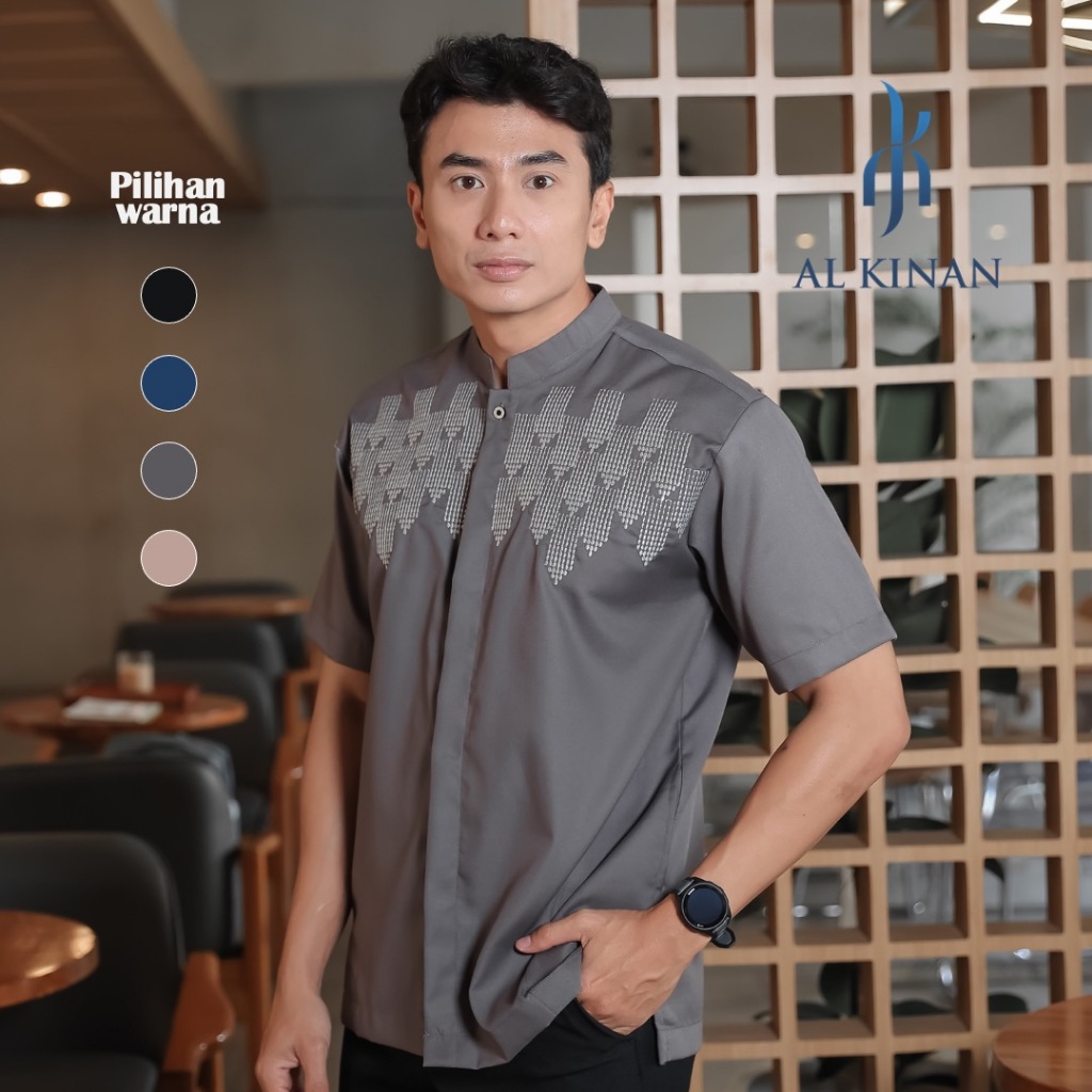 AL kinan baju koko muslim pria bordir lengan pendek katun toyobo warna hitam abu navy coksu