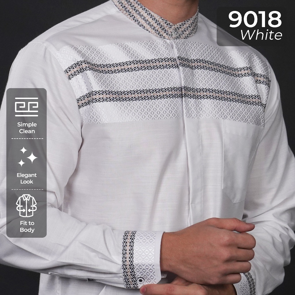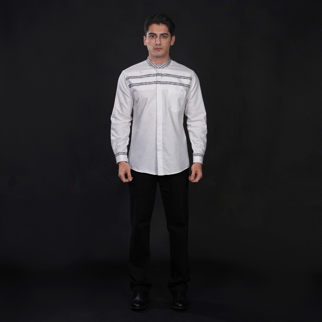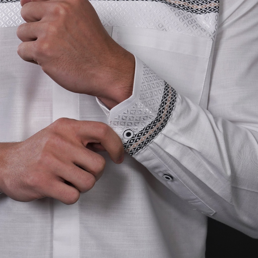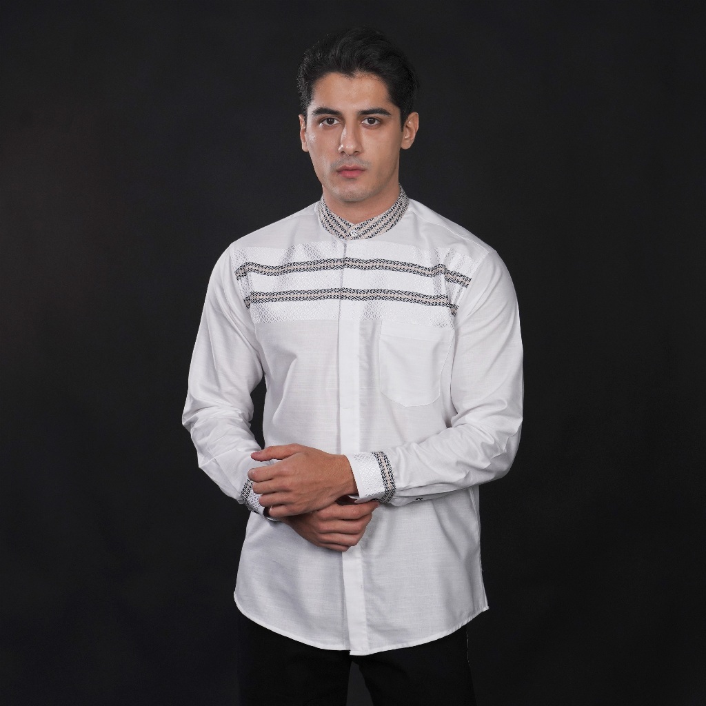 Casella Baju Koko Pria Lengan Panjang Horizontal White | Baju Koko Putih Ismail 9018 White