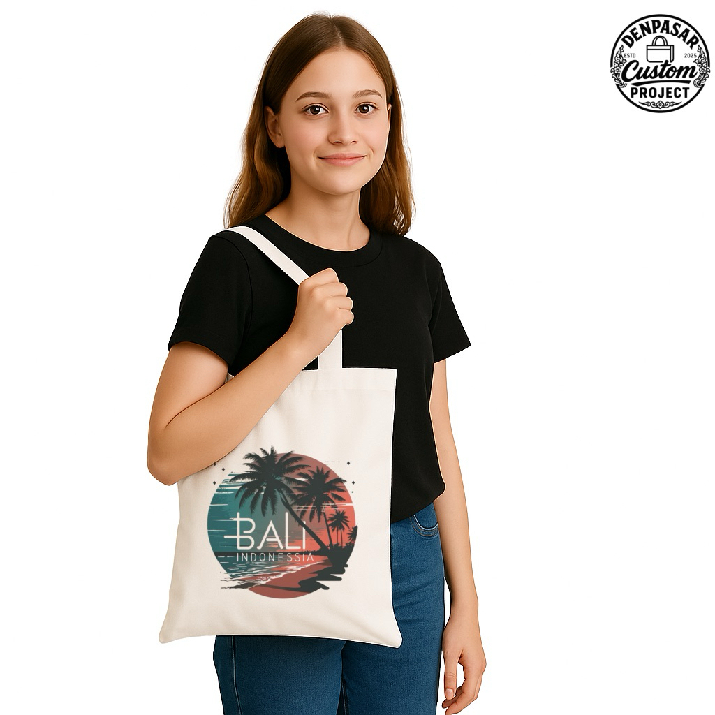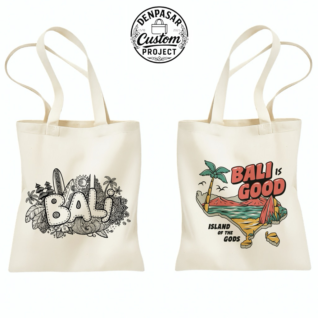 Totebag Motif Bali Vibes Untuk Pria dan Wanita / Tas Tote bag Blacu Aesthetic / Tas Goodie Bag