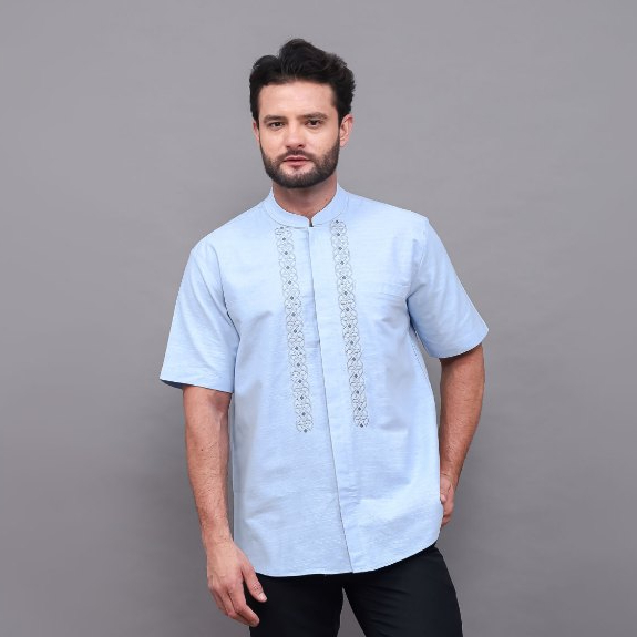 LOA STUDIOS - Baju Koko Kemeja Bordir Lengan Pendek Pria Sky Blue - Azmi