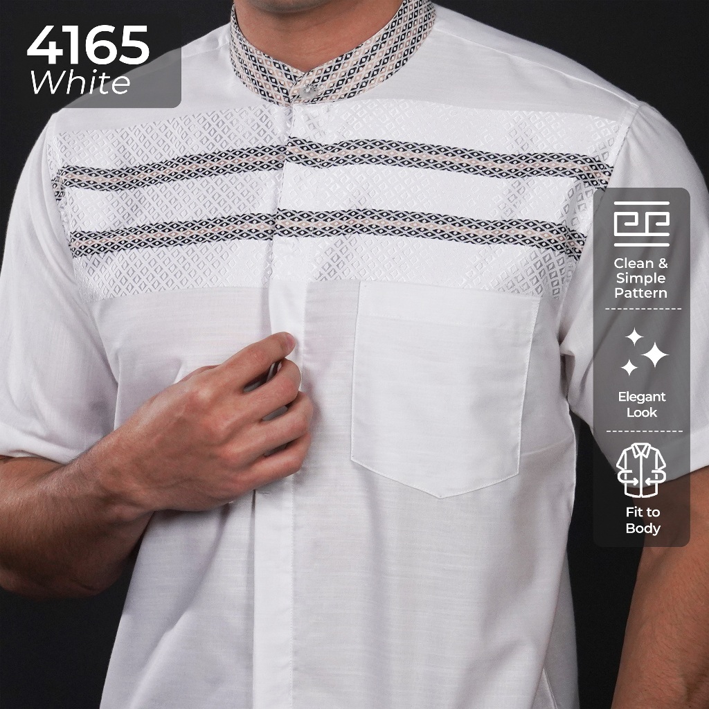 Casella Baju Koko Pria Lengan Pendek Horizontal White | Koko Elegant Ismail Lengan Pendek