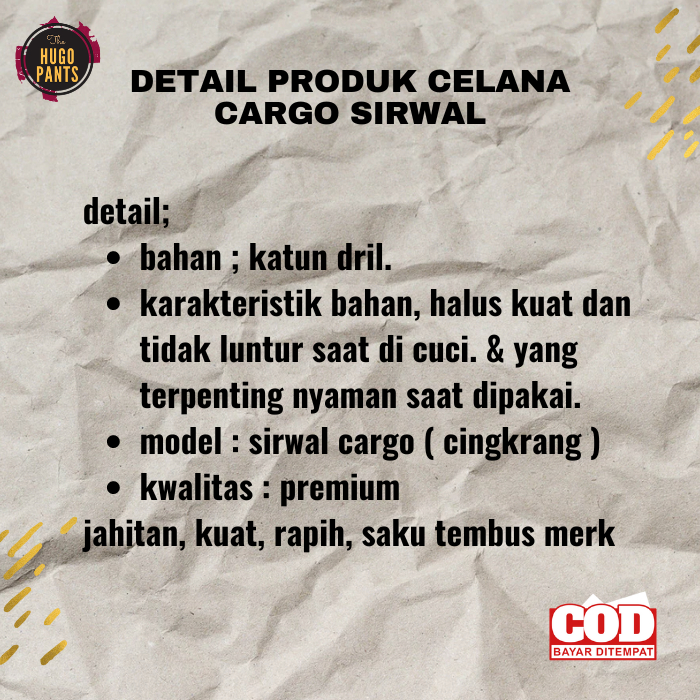 Celana Sirwal Cargo Angkle Pria Dewasa 3/4 Pinggang Karet