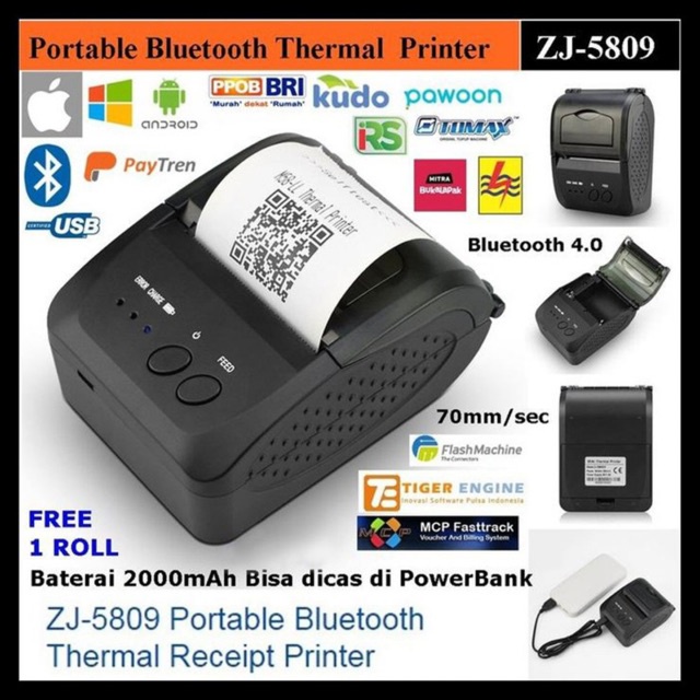 IWARE ZJ-5809 MINI PORTABLE BLUETOOTH THERMAL PRINTER PPOB/KASIR 58MM