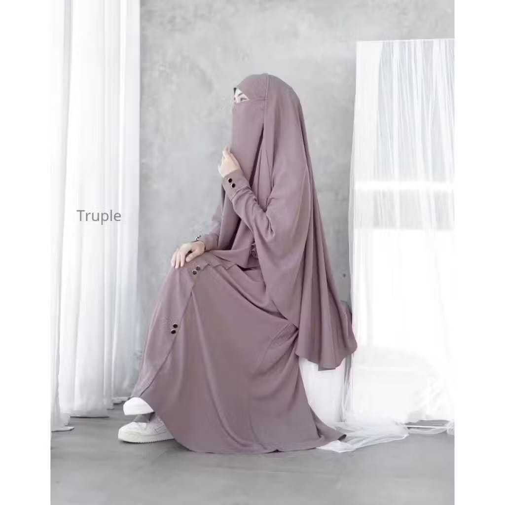 Gamis Syar'i Abaya Ayra Set Khimar French umroh haji muslimah terlaris di shope M L XL XXL XXXL