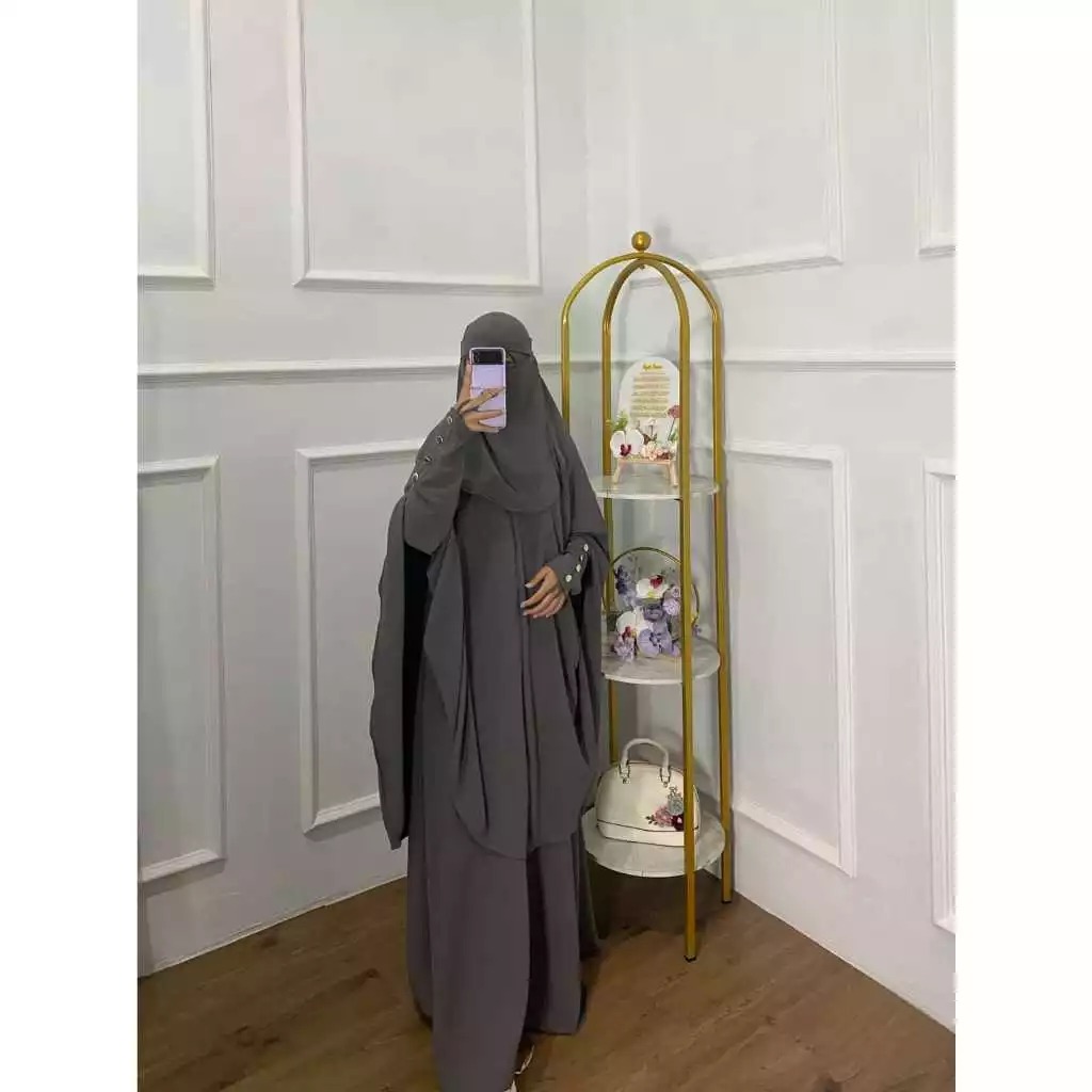 Gamis Set Abaya Cadar Syari Umroh Khimar Jumbo French Haji Bandana Kancing Premium