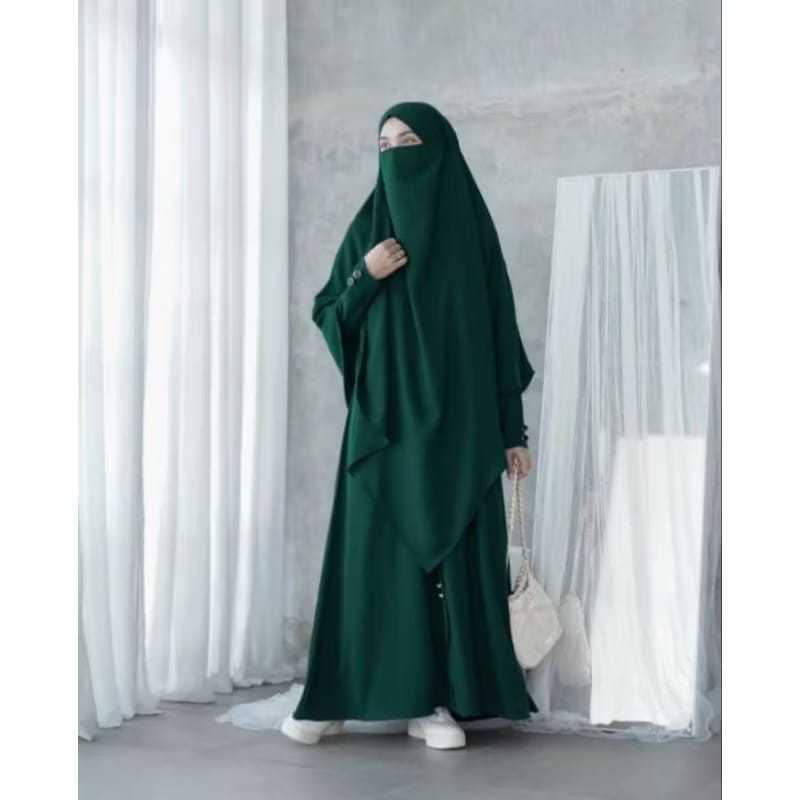 Gamis umroh haji abaya hitam ayra muslimah terlaris dishope set khimar ukuran M L XL XL XXL XXXL