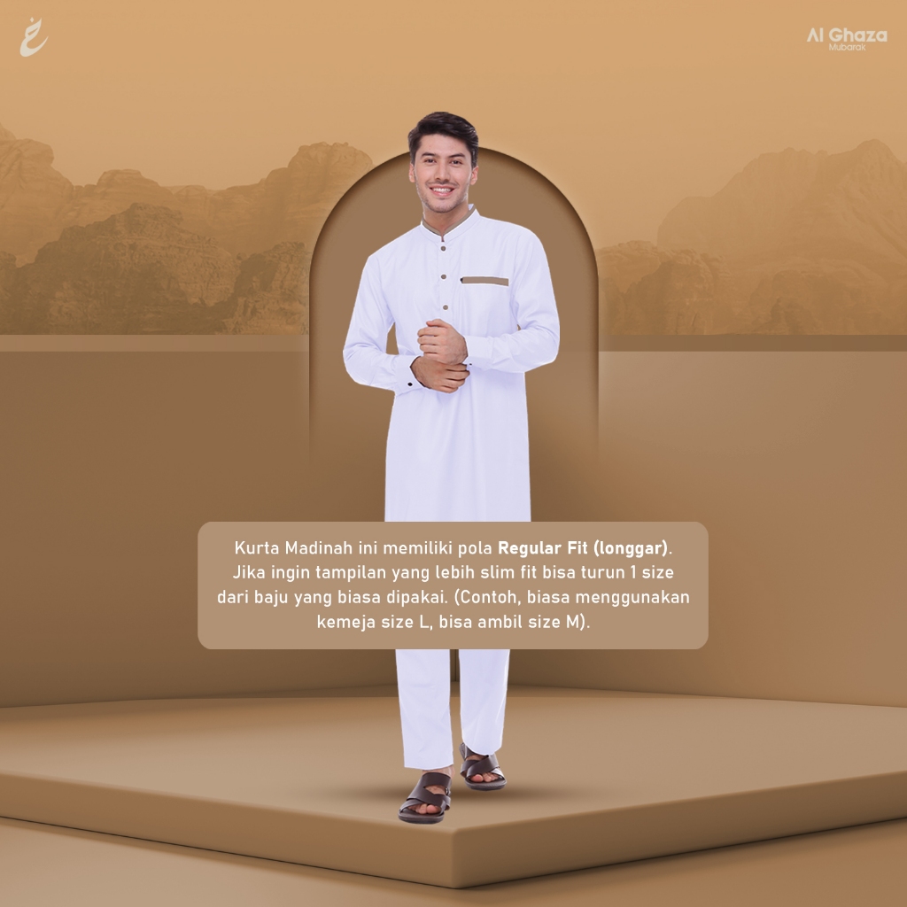 Alghaza Mubarak | Kurta Dewasa Pria Setelan | Kurta Madinah Lengan Kemeja