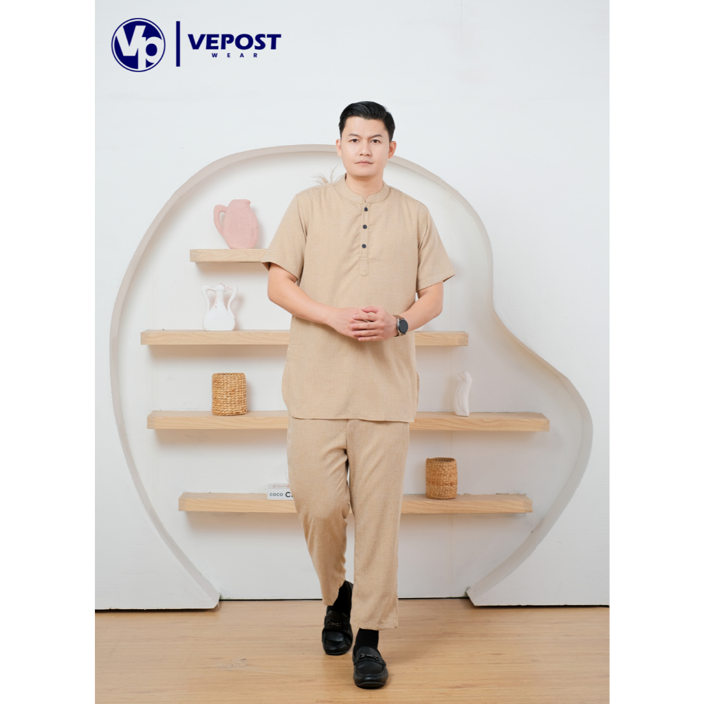 Baju Muslim Pria Koko Stelan Yusuf Lengan Pendek Model Polos Koko Satu Set Pria Bahan Katun Adem Dipakai Baju Koko Terbaru