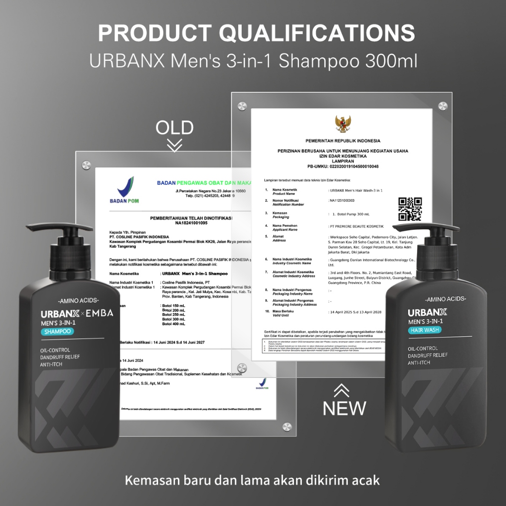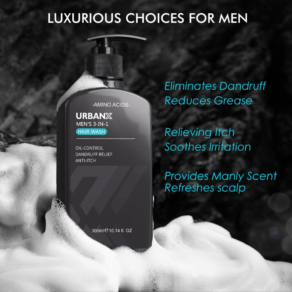 URBANX Men's 3-in-1 Shampoo 300ml Hair Wash Amino Acids Oil-control Dandruff relief Anti-itch MARIS SAL-Antimicrobial No