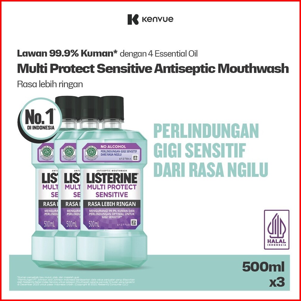 Listerine Multi Protect Sensitive Mouthwash Obat Kumur 500ml - Isi 3