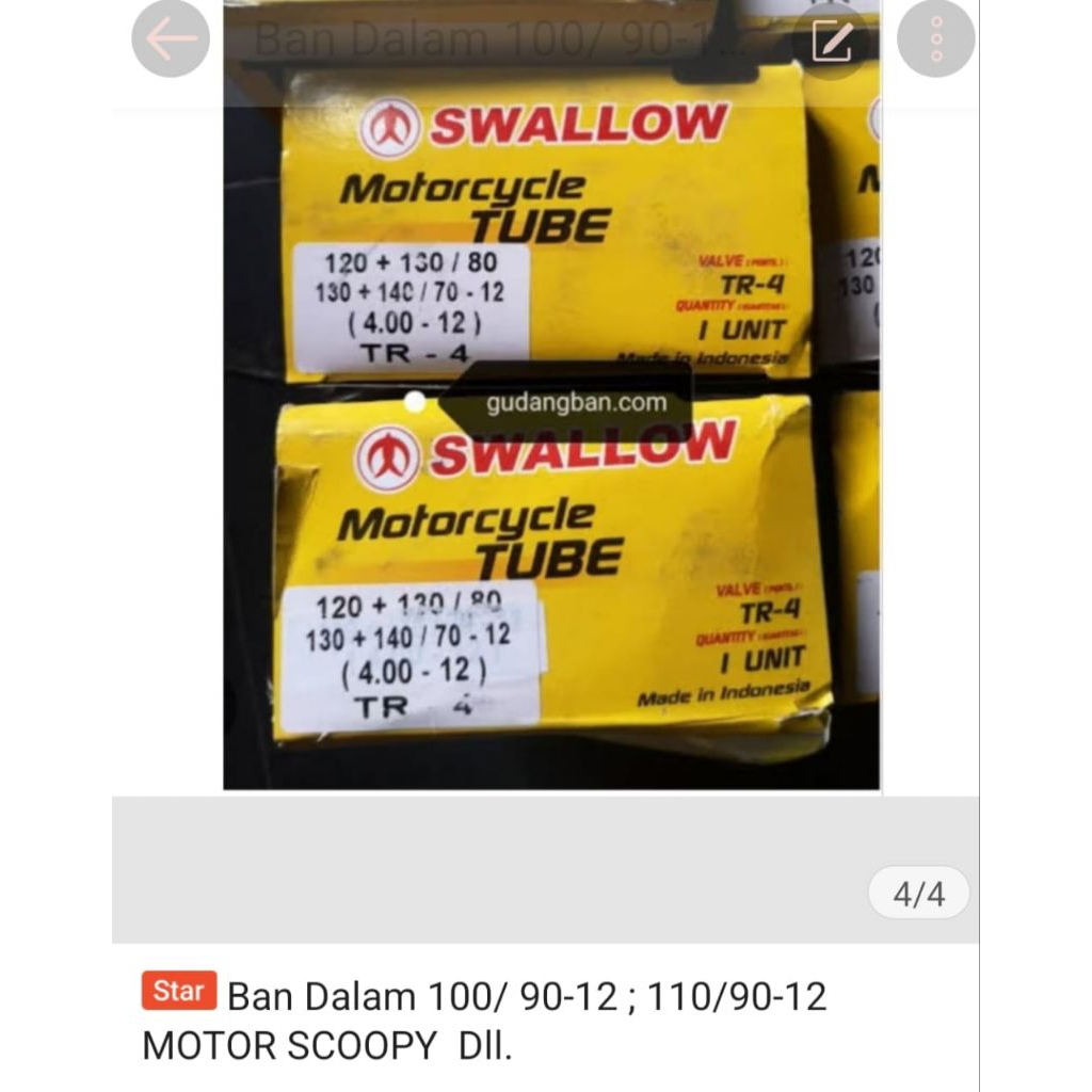 BAN DALAM SCOOPY RING 12 100/90-12 110/90-12