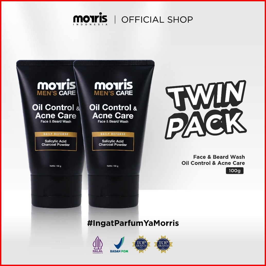 Twin Pack Isi 2 Morris Men Oil Control Acne Care Face Beard Wash 100gr