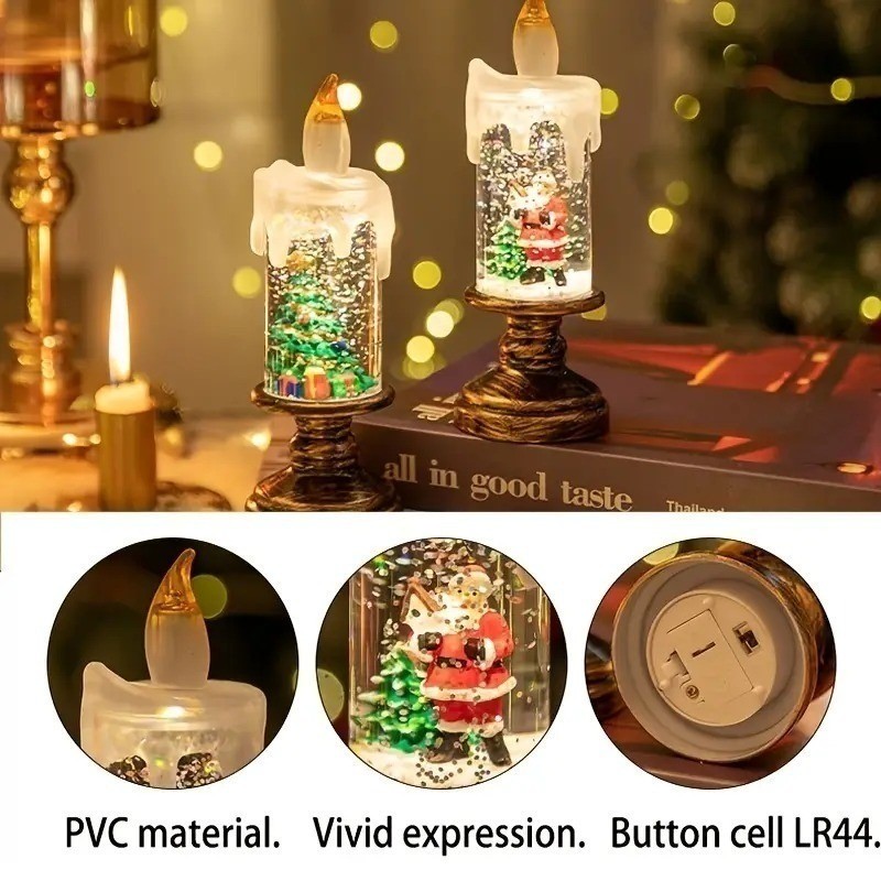 Lilin LED Hiasan Lampu Lilin Natal Dengan Efek Salju Natal Tears Alas Candle Christmas Dekorasi Santa Lampu LED Lilin Elektrik Kado Natal Kreatif
