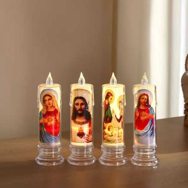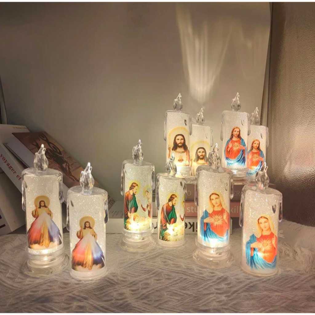 Lilin LED Elektrik 18cm Tears Candle Christmas Lamp Motif Tuhan Yesus Bunda Maria Dekorasi Hiasan Natal